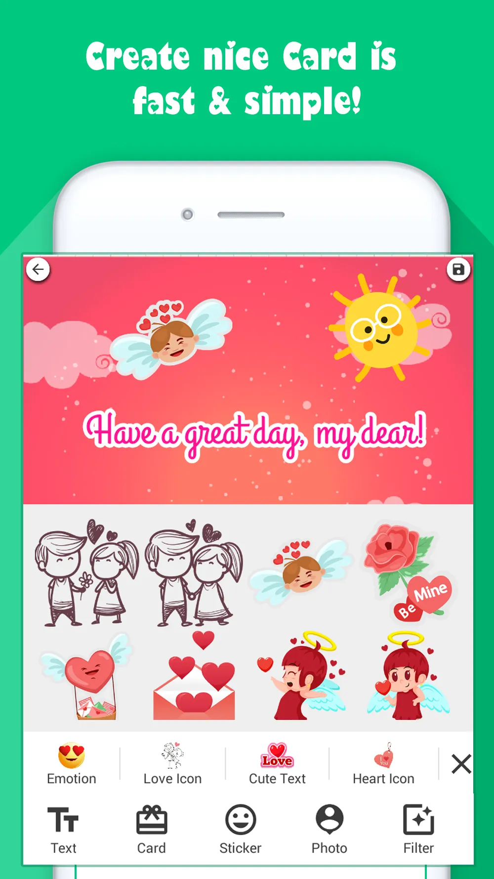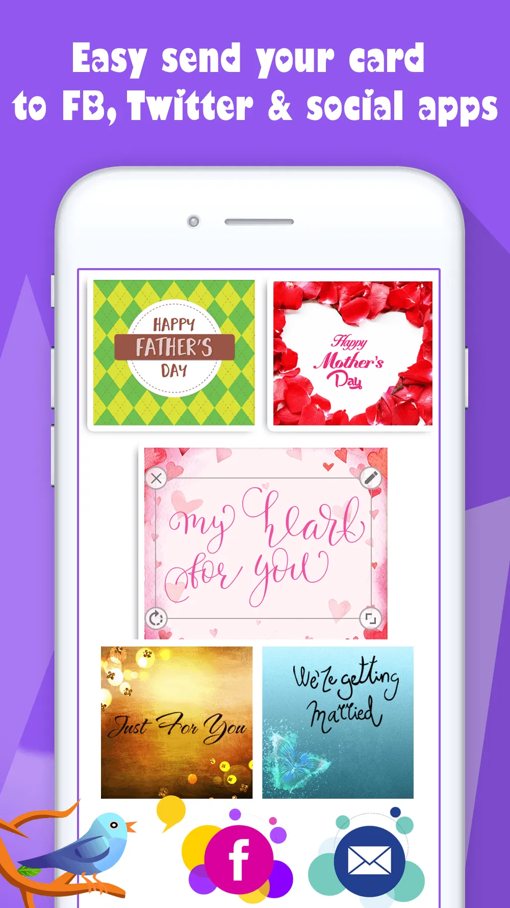 Creating a beautiful e-card is now so easy with this app. Just select a nice greeting card from thousand of templates, add cute holiday stickers, write warmly text and decorate it, apply amazing filter and effect, then you have a so cool e-card for sending to your loved ones! Creating an e-card is now fast and simple than ever! * Choose a holiday greeting or love card from beautiful collection * Add text to the photo, and modify it with color, stroke, shadow, nice font, gradient... * Decorate your greeting e-card with cute winter stickers * Apply special filter and effect to make your personalized photo more amazing...