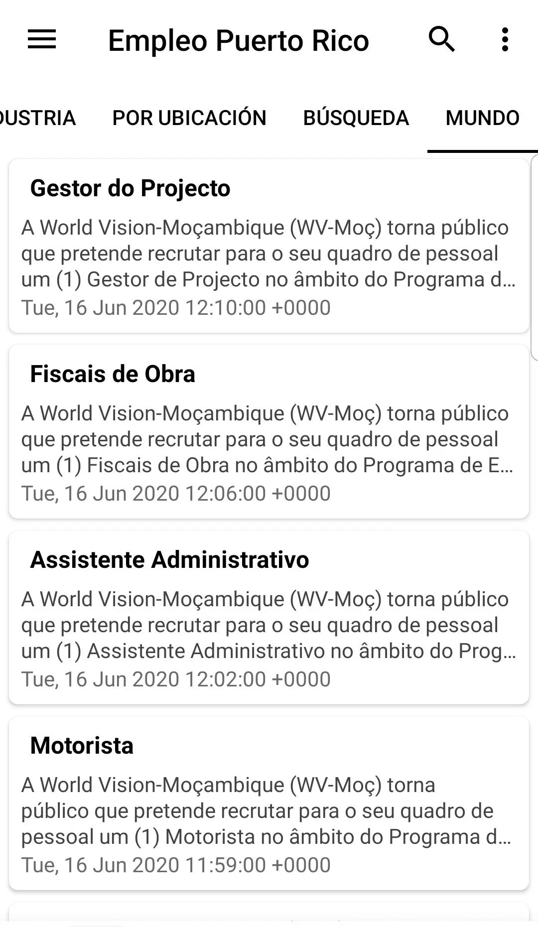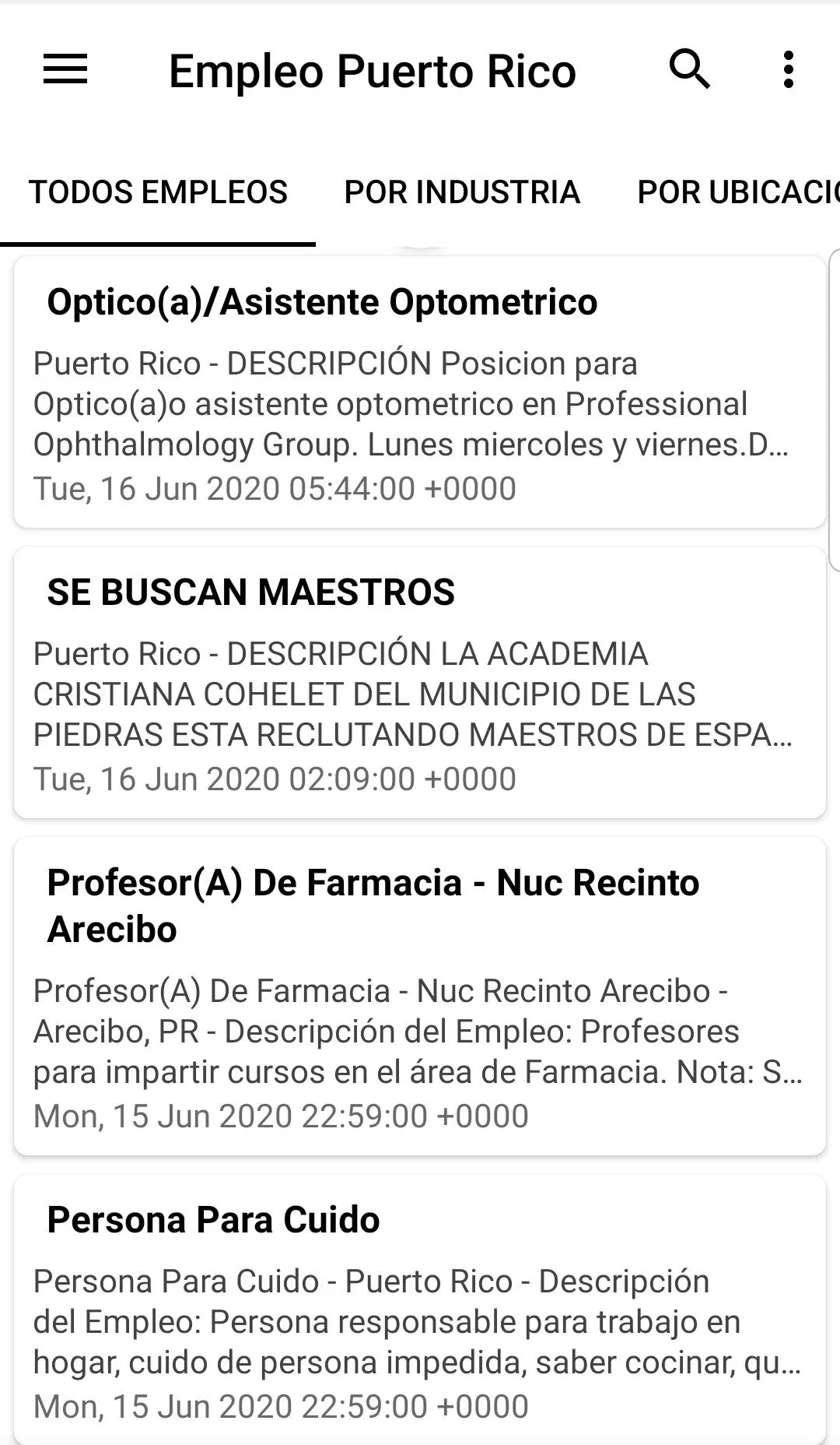We put together all the job vacancies in Puerto Rico for you. There are more than 33,280 websites worldwide in just one application. You can do a free search, or search by activity sector or by your region, very easy to use ... In addition to vacancies in Puerto Rico you can also find vacancies in the rest of the world Install FREE NOW ...