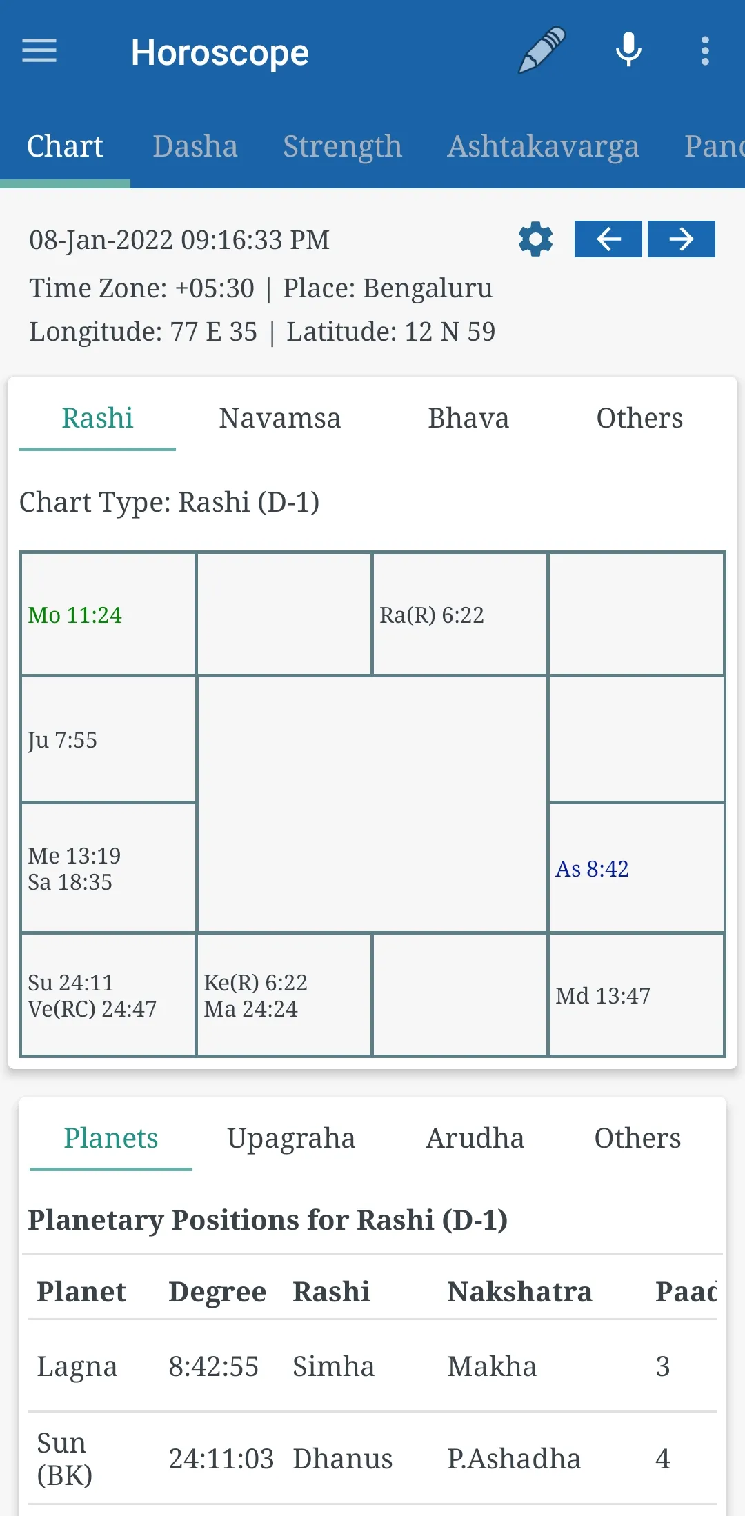 JyotishApp is a free, offline and Ad-less Vedic Astrology or Hindu Astrology or Jyotisha software application with PDF support. NO PREDICTION: This App does not give any prediction. The App supports voice commands. Generate horoscope using voice commands ( speech recognition ) without manually entering birth details. The main features of JyotishApp are: ==============================...