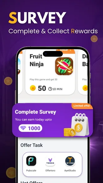 Welcome to OfferPay — the rewards app that lets you earn loyalty points by completing quick surveys, exploring new apps, and playing fun games. Redeem your points for mobile recharges, DTH recharges, Gift cards, and Google Play codes all in one secure place. OfferPay makes earning simple, safe, and fun — helping you collect rewards and pay for essential services from home. ⭐ Multiple Ways to Earn Points 🎮 Play Games: Enjoy fun games through trusted offerwalls and earn loyalty points....
