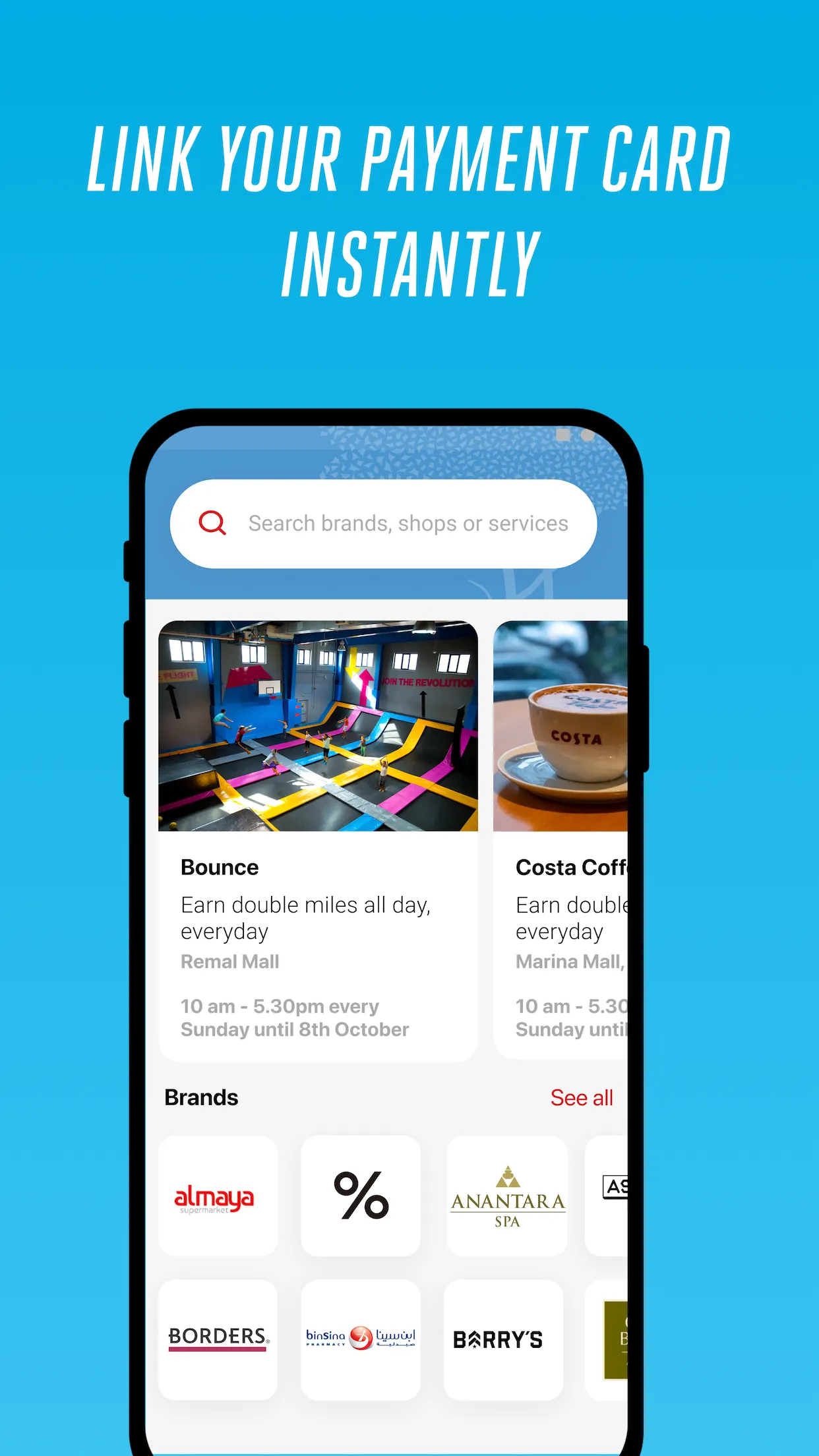 Earn Skywards Miles automatically when you shop, dine, play and unwind in the UAE. Simply download the Skywards Everyday app, log in, and link a payment card to your profile and you’re ready to earn Skywards Miles. Choose from hundreds of partners throughout the UAE. * Link up to five Visa or Mastercard debit or credit cards to your profile to earn Skywards Miles automatically at checkout. * Earn with hundreds of partners across fine and casual dining, luxury and high street shopping, grocery, services, leisure, entertainment, beauty and wellness. ...