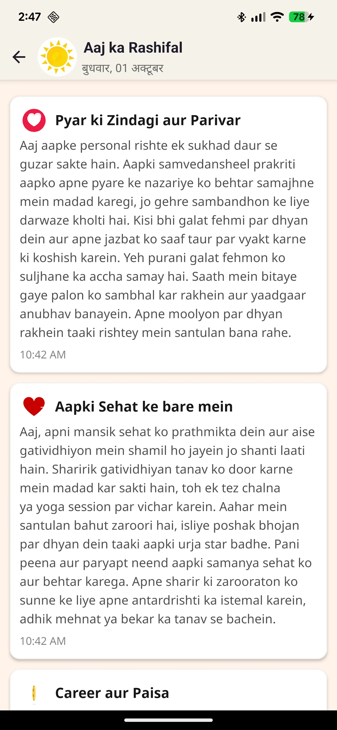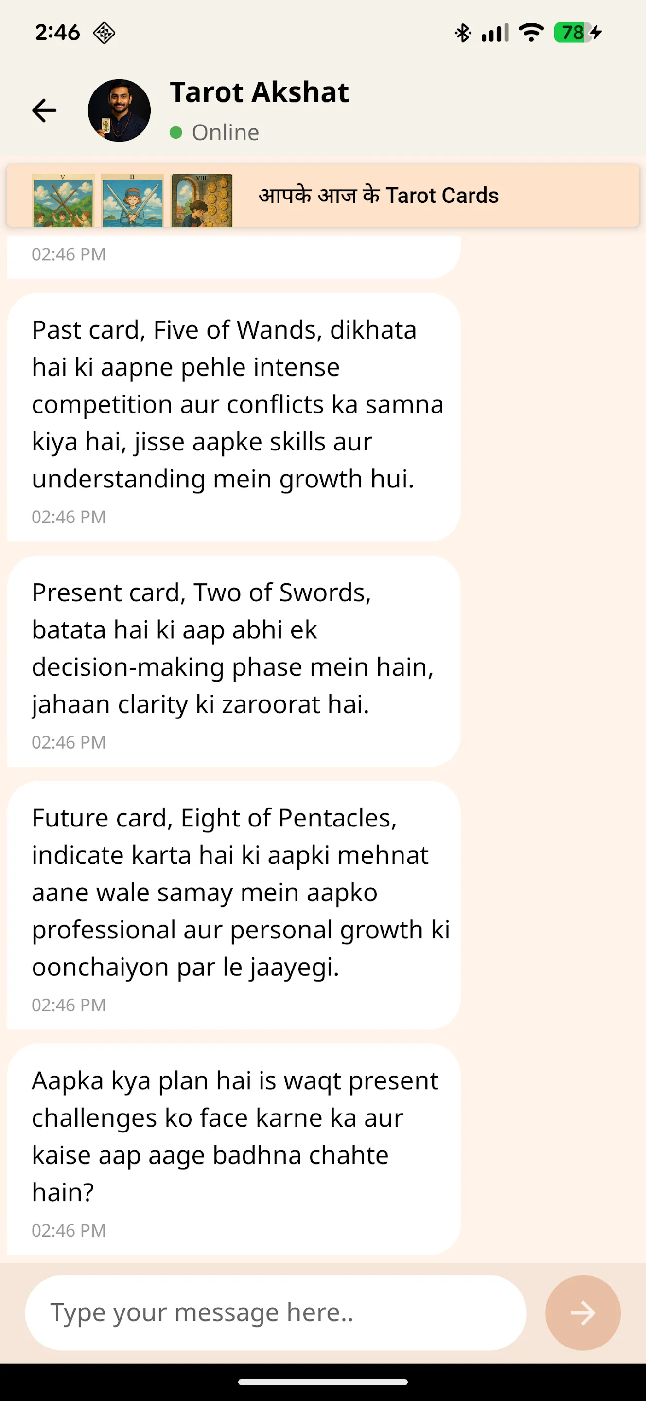 Tarot99 ek simple, beautiful aur भरोसेमंद app hai jo aapko Tarot readings + Vedic Astrology ke mix se रोज़ाना practical guidance deta hai. Chahe aap love, career, paise, health ya life decisions ko leke confused ho—Tarot99 aapko clear direction, positivity aur grounded advice deta hai, bina heavy jargon ke. क्यों Tarot99? Actionable guidance: Sirf भविष्यवाणी नहीं, बल्क़ि अगला क़दम क्या हो—yeh भी. ...