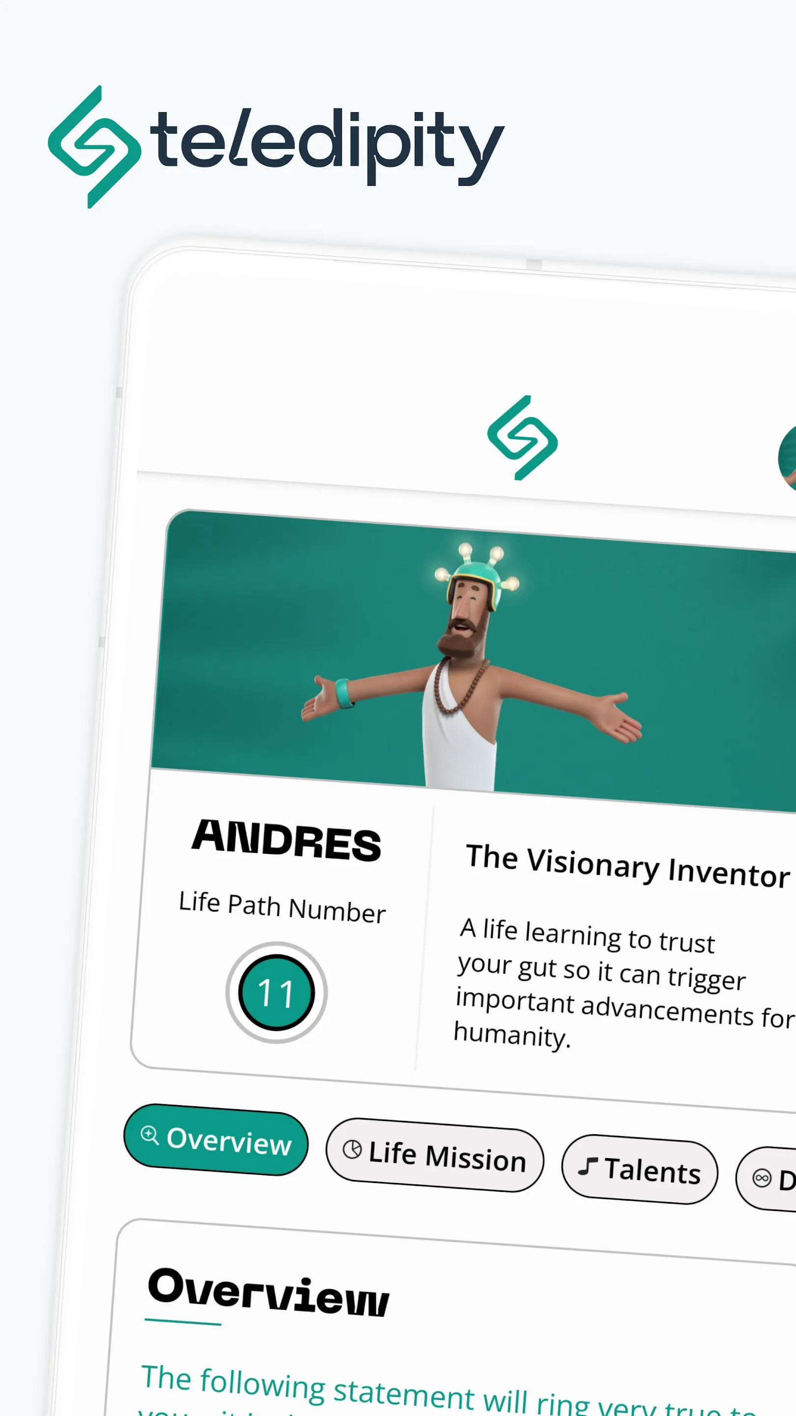 THE INTROSPECTION MACHINE OF THE FUTURE, POWERED BY ANCIENT ALGORITHMS Teledipity is a self-development platform powered by a 2,300-year-old formula - the Pythagorean Sequence. From a quick analysis of the numbers in your life, we are able to extract powerful insights about your personality traits, relationships, turning points, and opportunities. Our software has an eerie ability to reach you at the right moment with the right message, delivering highly targeted advice, introspections, book recommendations, and wisdom from history's greatest philosophers. ...