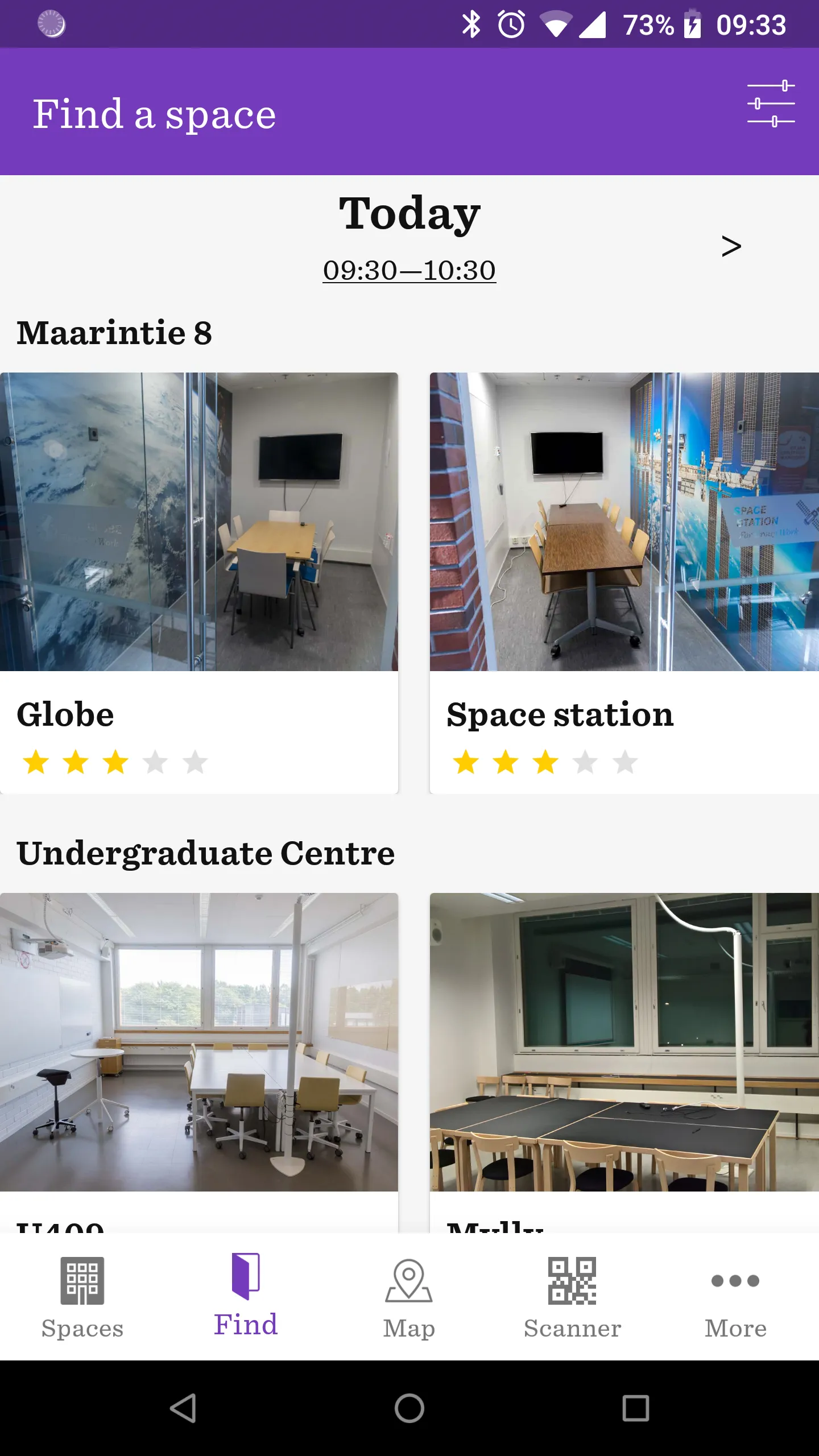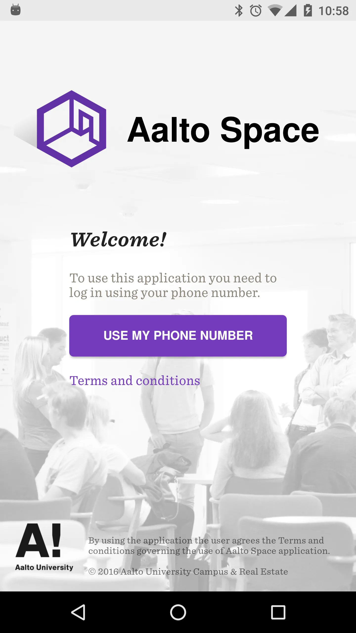 Finding free space for studying or group work in the Otaniemi campus area can be challenging. We want to make the finding and booking a space as easy as cycling. Space wave is a mobile application that helps students find free room and space Allows quick reservation. Space wave can be used to find and book study and group work spaces Specified for use by students in the Otakaari 1 building in Otaniemi. Space wave includes a messaging feature by means of Which Aalto University's communications department can send notification messages directed at students. FEATURES * Search for Otakaari 1 auditoriums, classrooms and other spaces * Real time reservation status has spaces available for students * Instant study and group workspace reservation for students...