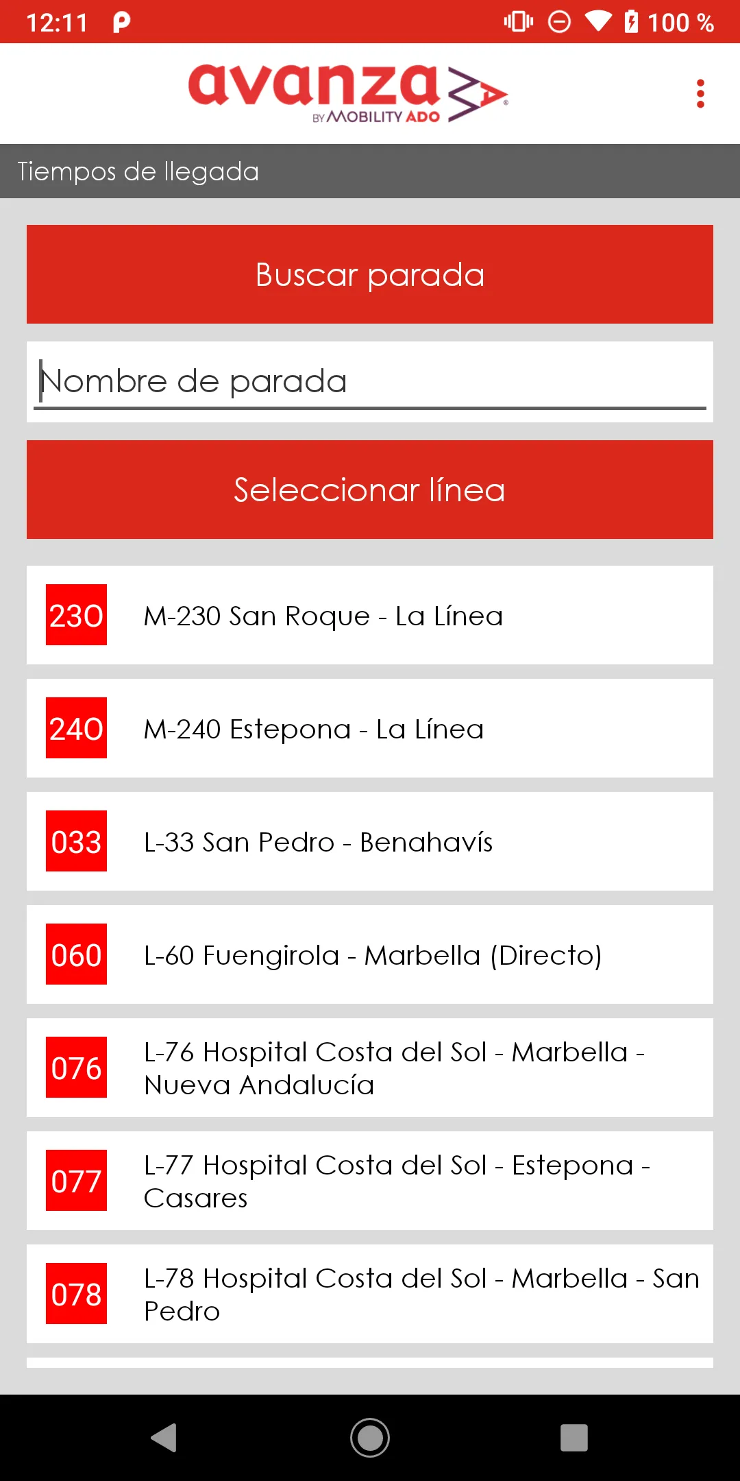 App official bus service from Malaga Avanza (Portillo), passenger transport by road in the Costa del Sol. With this application you can know the actual time it takes the bus to get to your stop, check schedules for that day, locate nearest stops to the point where you are, mark them as favorites and get information from all our lines. This App includes: 1. Time of arrival estimates actual query timeouts 2. favorite stops: direct access to the waiting time at stops saved 3. Stops nearby: Locate the nearest stop to your position (must be activated the service location / GPS mobile)...