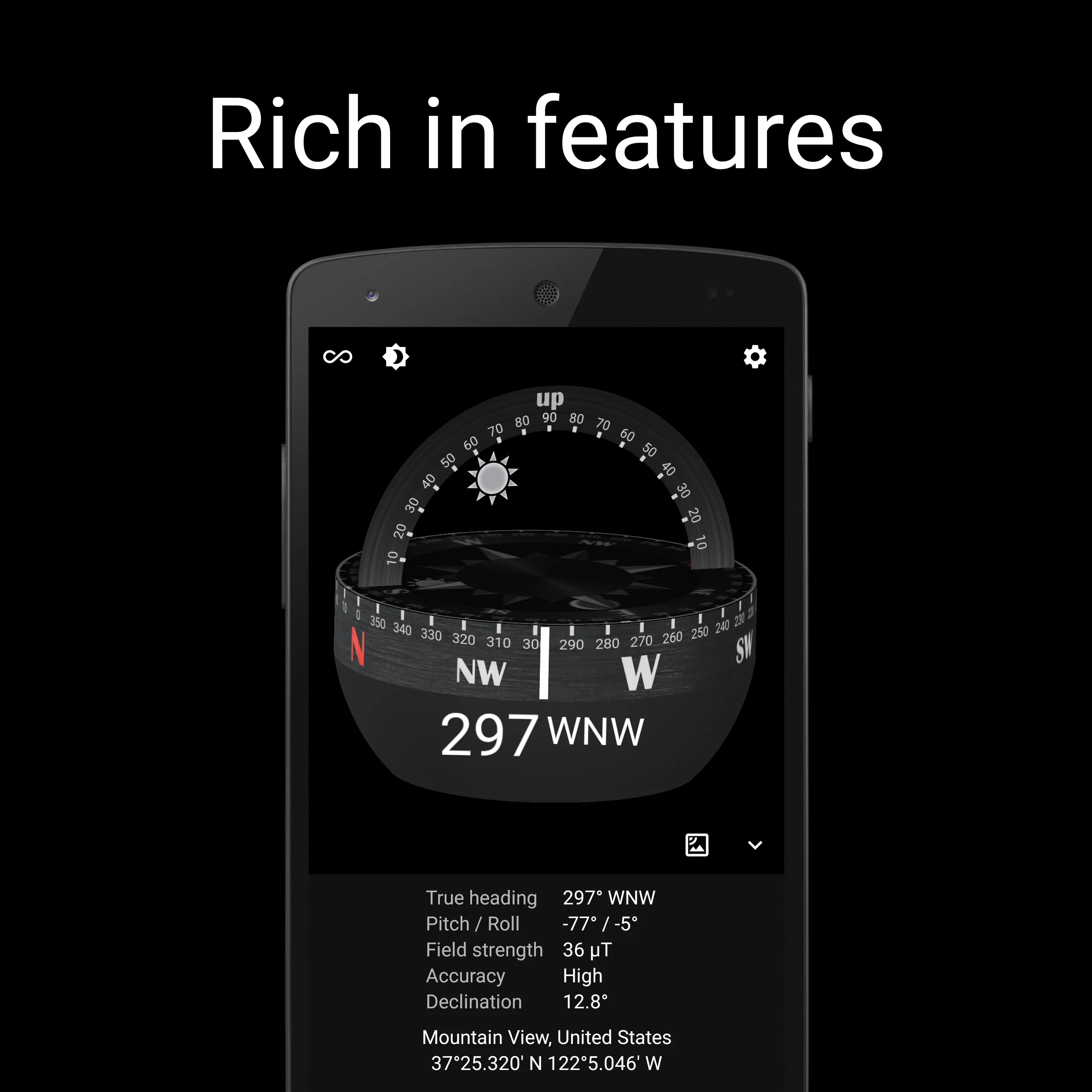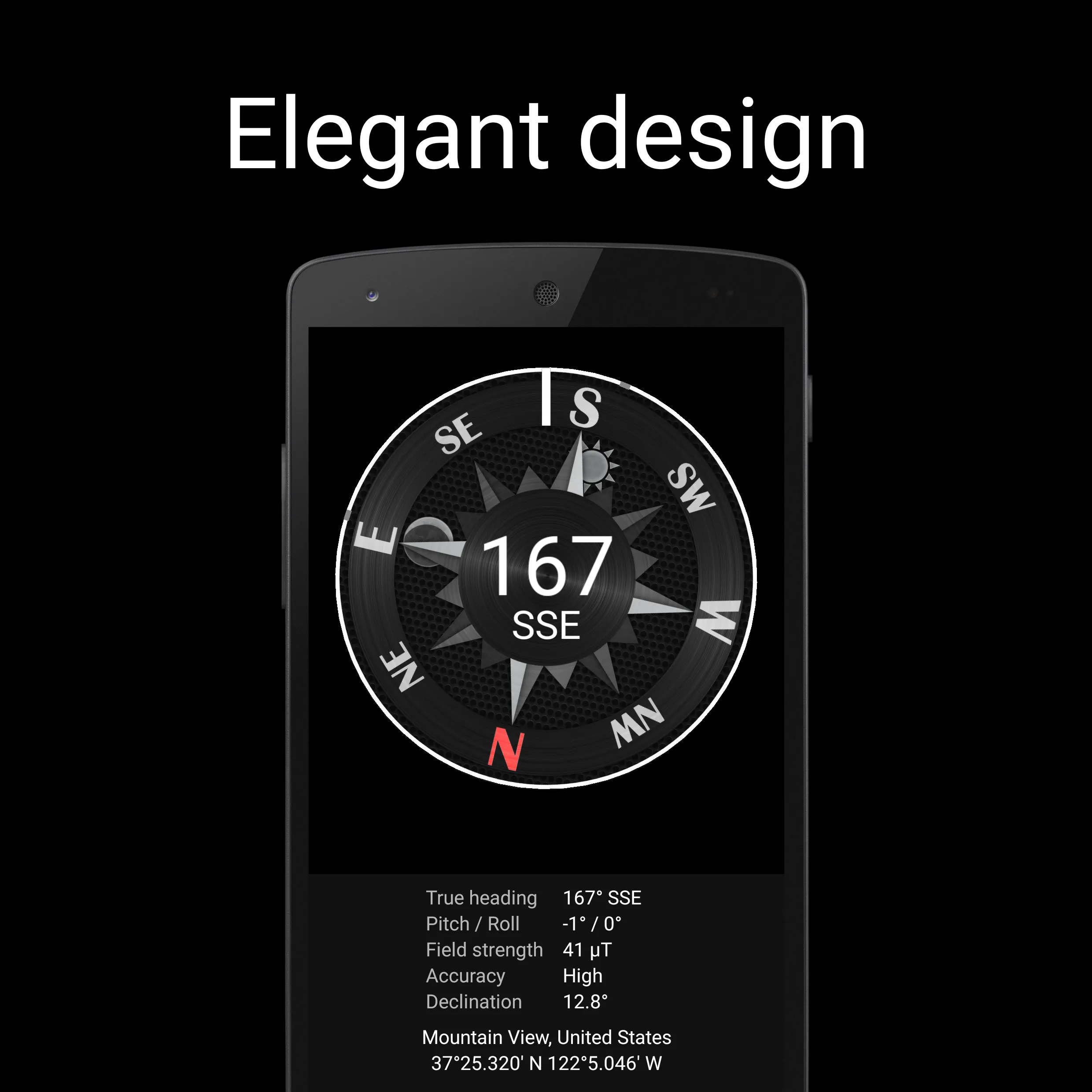 Compass Steel 3D is an ad-free and easy to use marine-style compass app. With Compass Steel 3D app you get: • Multiple color themes to choose from. • 2 compass modes to choose from - True mode (based on True north) and Magnetic mode (based on Magnetic north). • Sun and Moon positions. • Sunrise and sunset times....