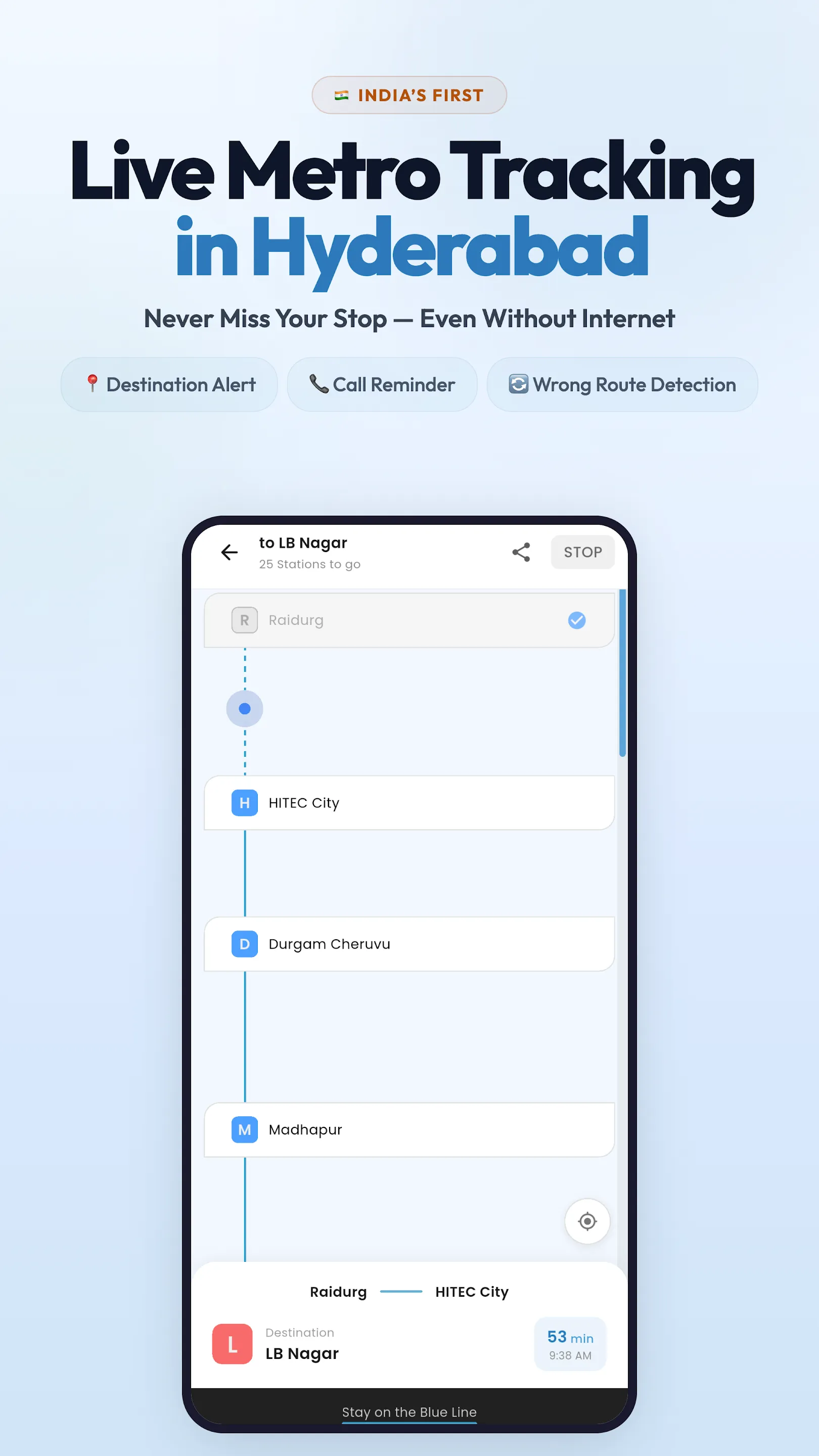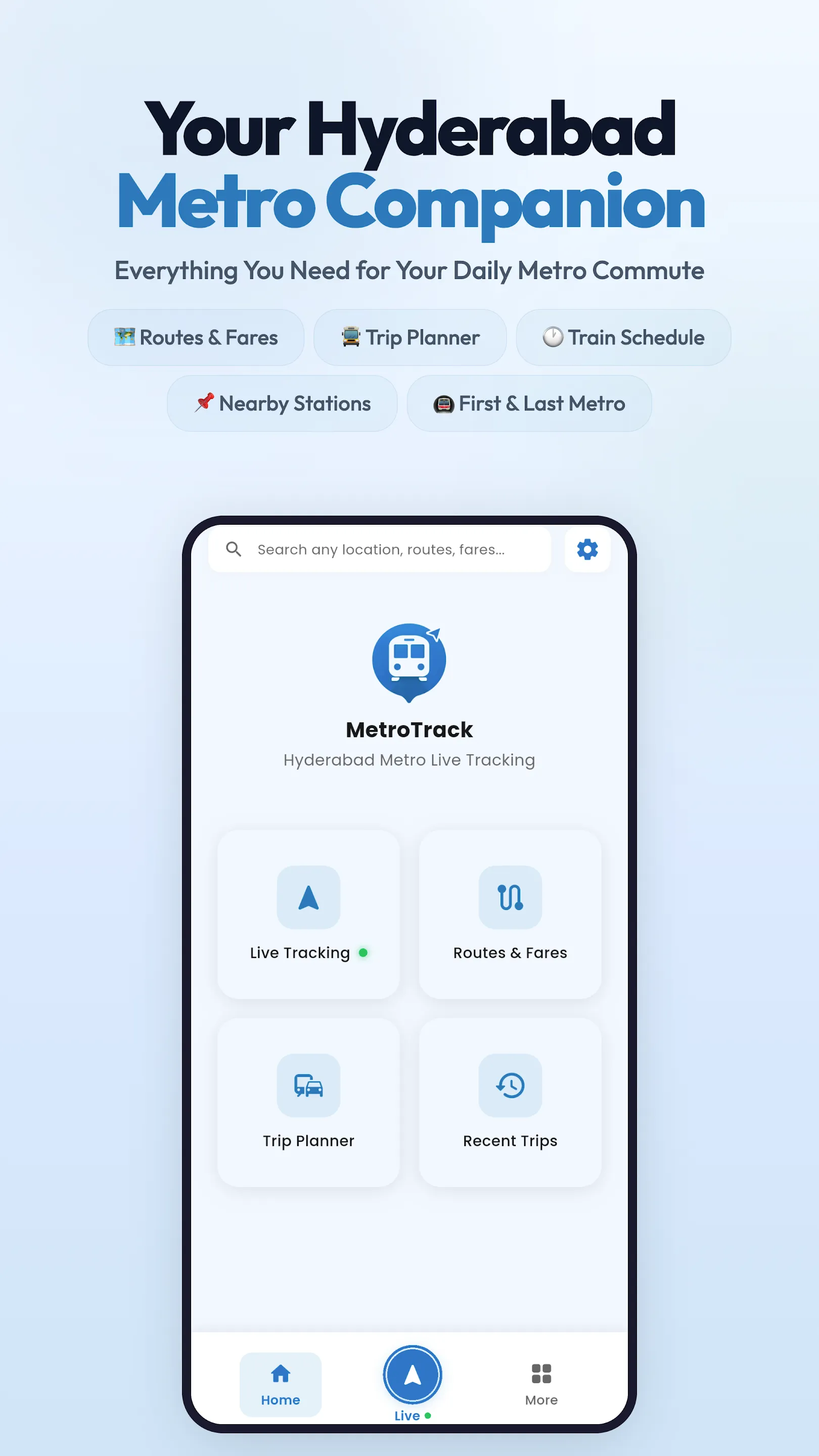 MetroTrack™ — The Smartest Way to Travel on Hyderabad Metro MetroTrack is a real-time journey tracking app for Hyderabad Metro commuters. Unlike apps that only show static routes, MetroTrack tracks YOUR live location during your metro ride — showing exactly between which stations you are, how many stops are left, and your estimated arrival time. Works even when your phone is locked or the app is closed. ━━━━━━━━━━━━━━━━━━━━━━━━━━━━━━ ...