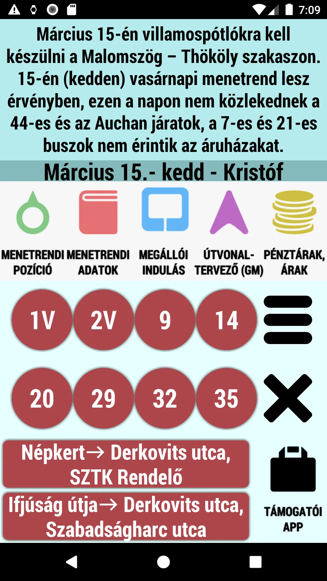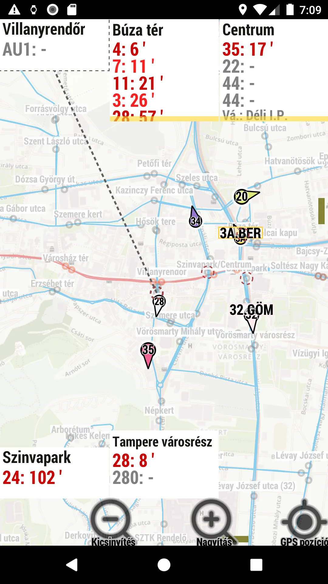 Miskolc transport schedule (offline). The schedule of flights can be viewed in plain and map view, where the application adjusts the map to the current position if positioning is switched on, so the nearby buses and trams can be seen immediately. Departure information is also available for stops.