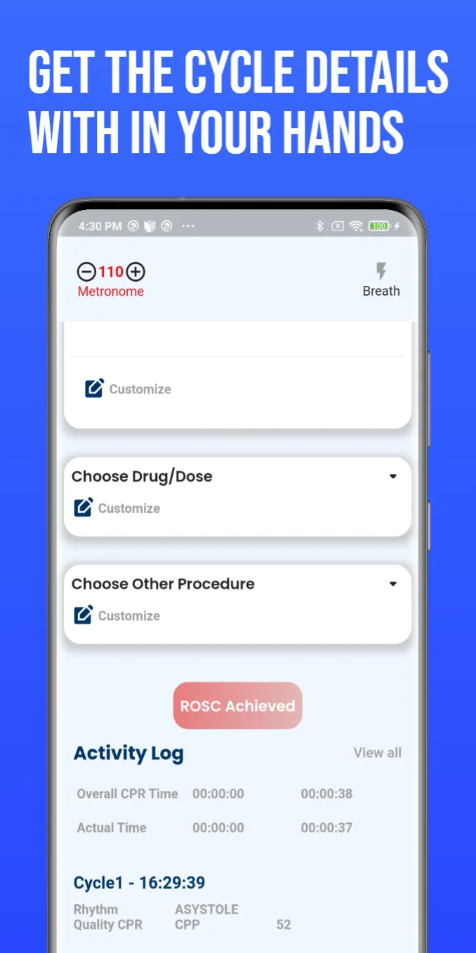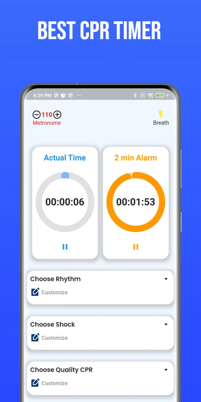 TACT CPR TIMER is designed to assist people performing CPR (cardiopulmonary resuscitation) by providing real-time information on the quality of resuscitation with audio and visual feedback. This real-time app makes recording during codes easy. It can also simplify data entry and helps providers increase the availability and accuracy of documentation. Following tools are used in the Application: • Metronome • 2-minutes alarm • 6 seconds timer • Actual compression timer recorder...
