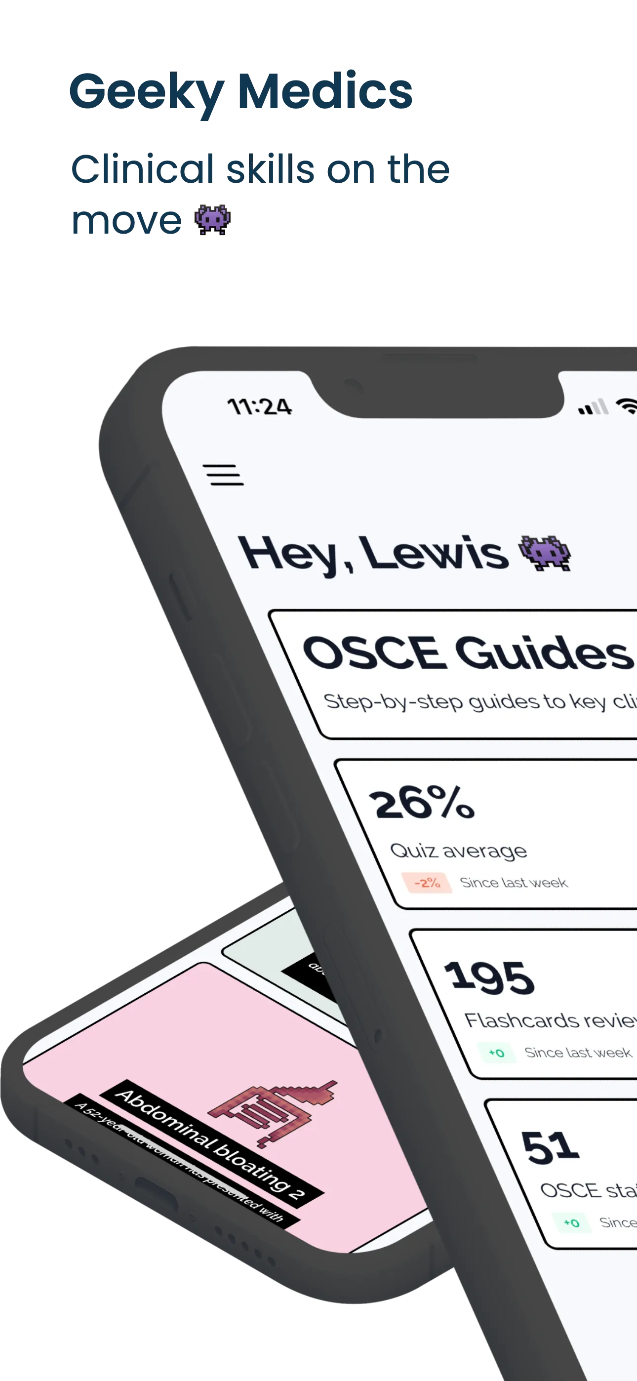 The Geeky Medics app is packed with features, including: - OSCE Guides (200+) to prepare for the UKMLA CPSA - OSCE Checklists (150+) to practice with others - OSCE Stations (1000+), including AI-powered virtual patients - Flashcards (2500+) and review cards you've created - Questions (5000+) including UKMLA AKT and PSA question banks...