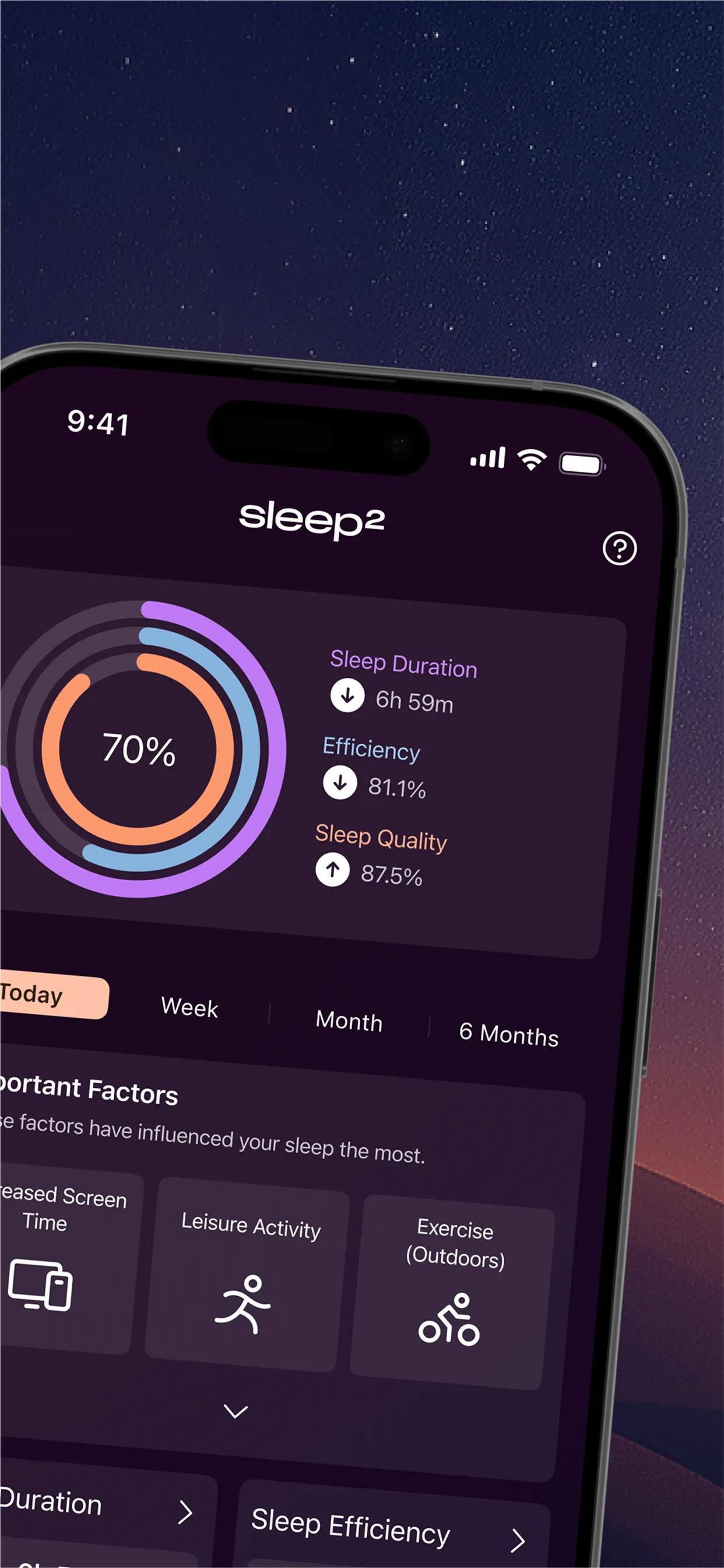 sleep² is your personalized sleep tracker and sleep training. sleep² is more than just a tracker, we also offer sleep training combined with sleep analysis. Built on extensive research, sleep² is designed for those who prioritize high-quality regeneration. The sleep² intensive program is a medically certified product approved in the EU, specifically designed for people suffering from acute sleep disorders such as insomnia. Our evidence-based approach has already helped thousands of individuals improve their sleep quality through structured, step-by-step sleep tracking and personalized sleep training. ...
