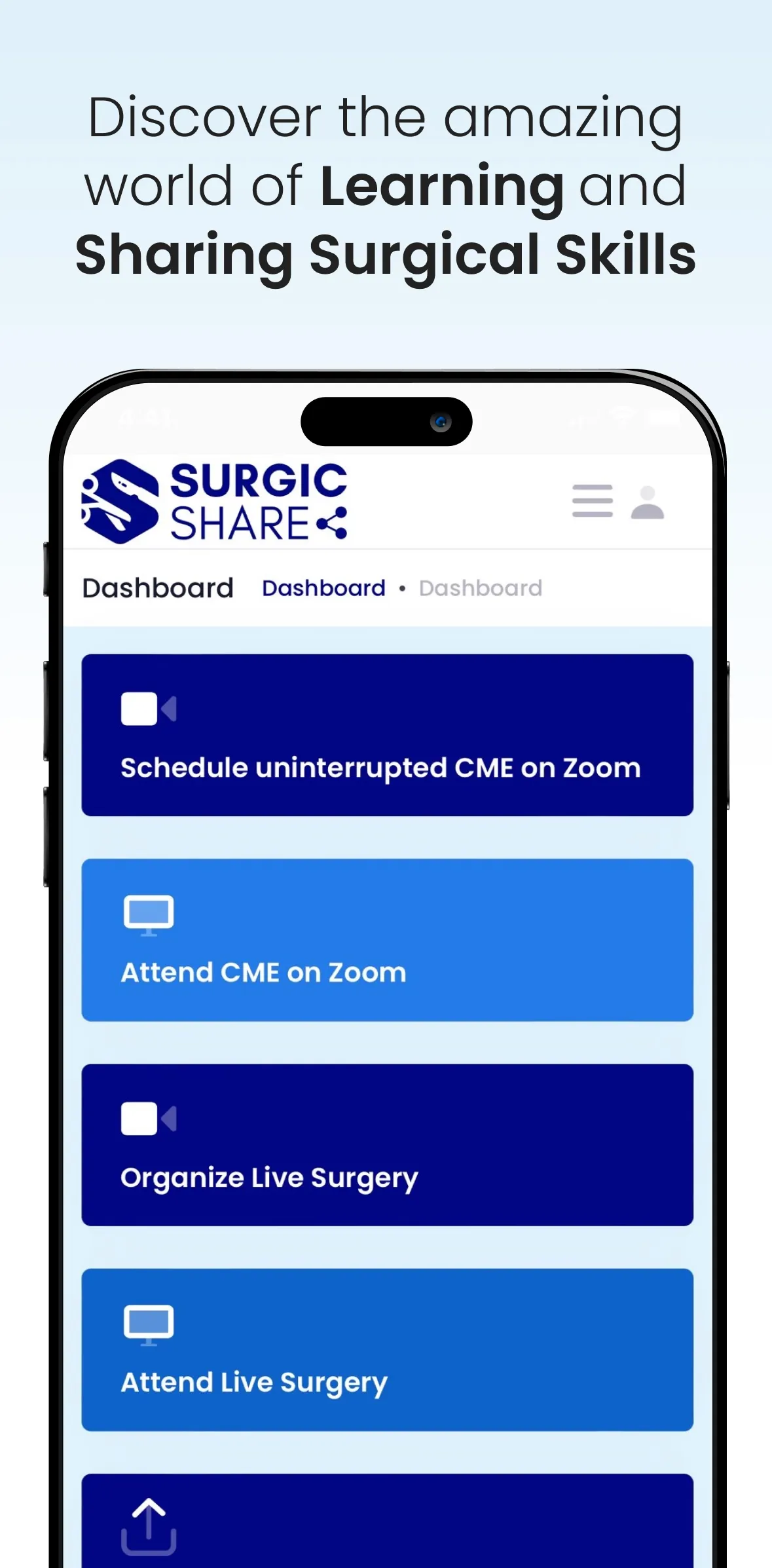 Surgic Share is a digital platform for expert, young & future surgeons for learning and sharing surgical skills. Surgic Share provides digital platform of Zoom free of cost, to organize and attend CME / round table meeting with group/ association of surgeons, anytime as per your convenience, for unlimited period. Surgic Share provides platform for senior surgeons to post his/ her surgery videos & Tutorials and at the same time it provides opportunity for young surgeons to search for surgery videos & Tutorials of specific surgeons by filtering his/ her country, state, city and Institute of particular surgeons. Junior Surgeons can see surgery videos by filtering specialty, subspecialty or title of surgery. ...