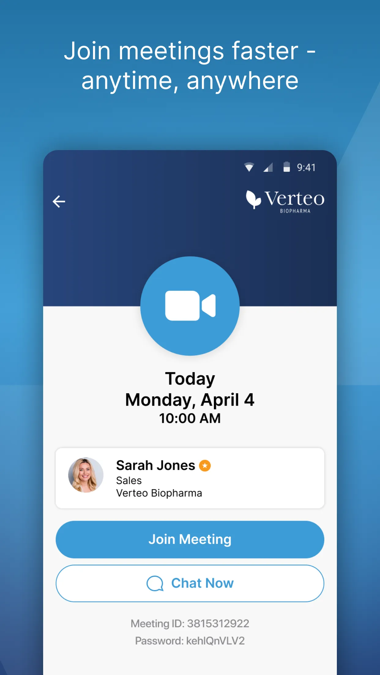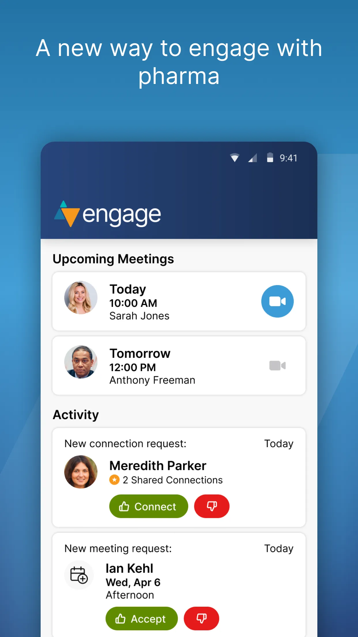 Veeva Engage enables healthcare providers to communicate directly with pharmaceutical companies from one easy-to-use application. Physicians can now use their Android device to attend video conference calls and webinars hosted by any life science company using Veeva Engage.