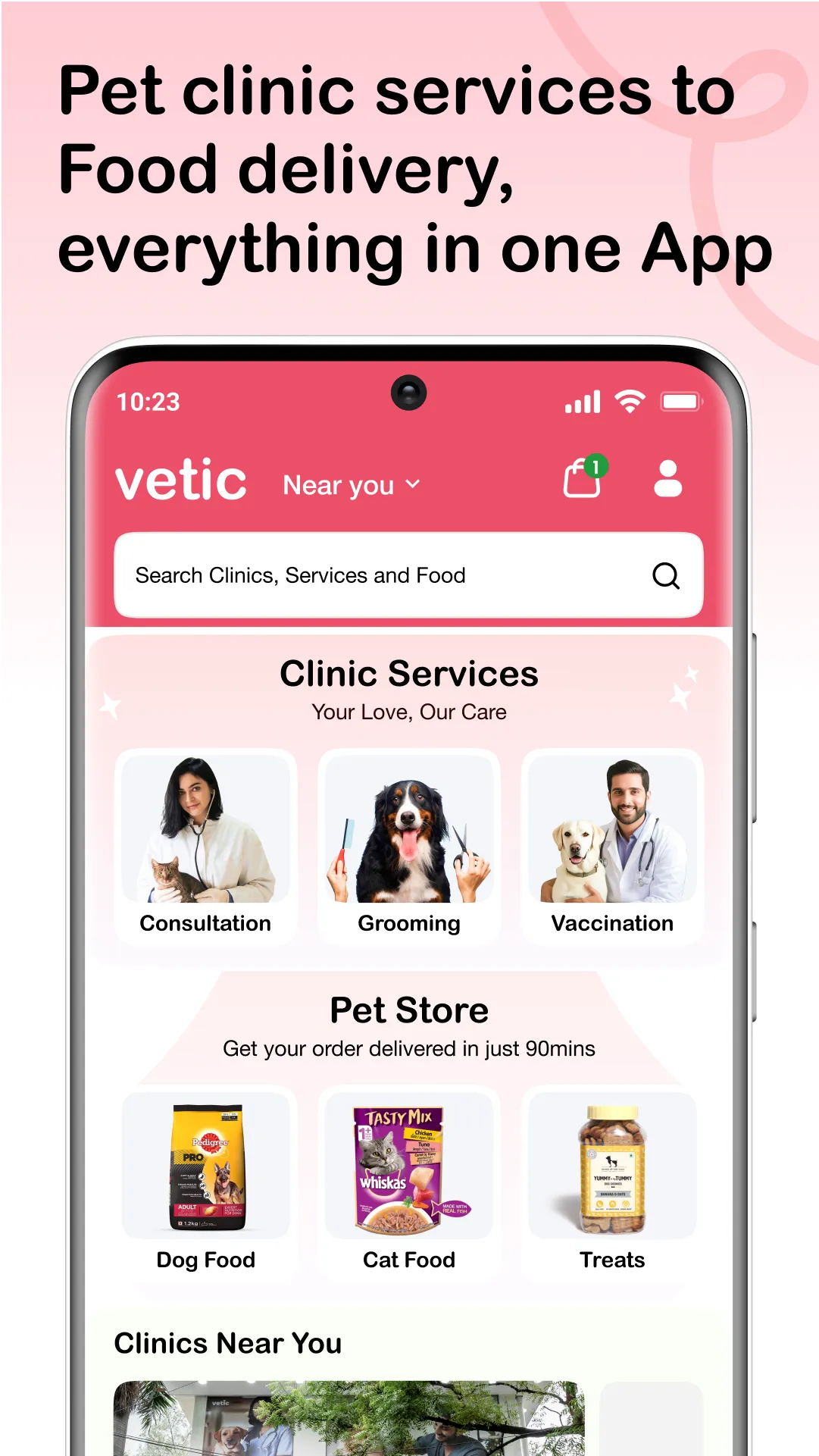 The Vetic - Pet Food, Pet Clinic and Grooming Booking App is your go-to platform for expert pet healthcare, pet grooming, and wellness services. We combine convenience, professional veterinary care, personalised grooming solutions and 90-minute doorstep pet food delivery, making it easier for pet parents to give their pets the care they deserve! Key Features of the Vetic - Pet Clinic, Grooming Booking and Pet Food App: Book Vet Appointments Instantly: Get expert medical advice from qualified veterinarians at the Vetic Clinic. Book an appointment in 3-steps from anywhere, anytime. Find the nearest Vetic Clinic through the app, choose the veterinarian you like and confirm the appointment time as per your convenience. Book Pet Grooming Online: Schedule customised grooming sessions in 3 steps at the Vetic Pet Clinic near you. Our professional groomers provide premium care for pets of all breeds and ages, with separate grooming areas for dogs and cats....