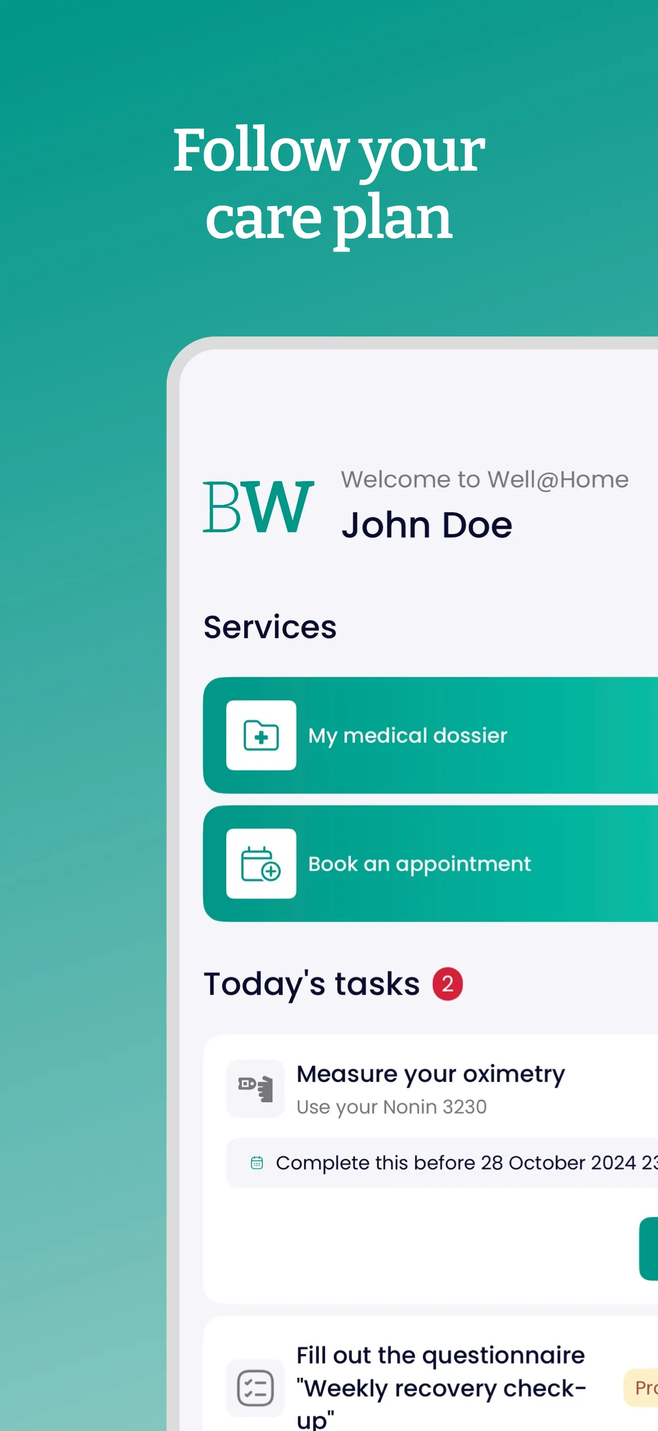 With Well@Home, you can easily stay in touch with your care team wherever you are: fill out questionnaires from the comfort of your home, measure your vital parameters with connected measurement devices, keep track of your progress with a diary, exchange messages with your caregivers, call into video consultations, and much more. This app is available exclusively upon invitation by a caregiver.