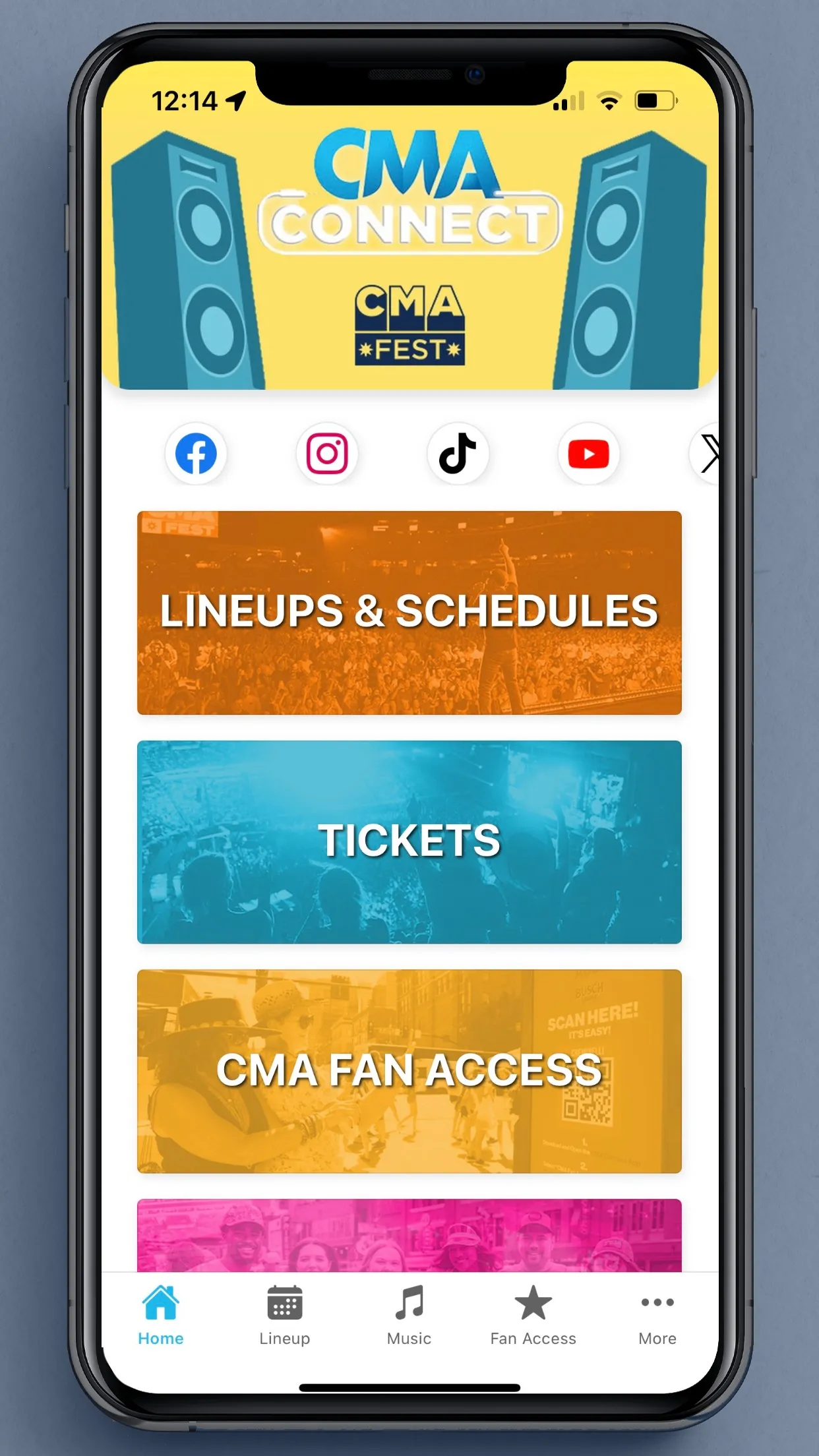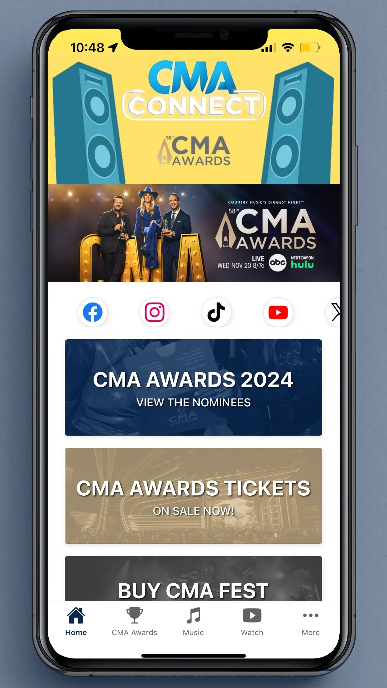 Welcome to CMA Connect, the official app of CMA! Download and turn on notifications for exclusive announcements. Register for CMA Fan Access in the app to participate in challenges for opportunities to win prizes throughout the year! Information and features available in the CMA Connect app include: Event Lineups ...
