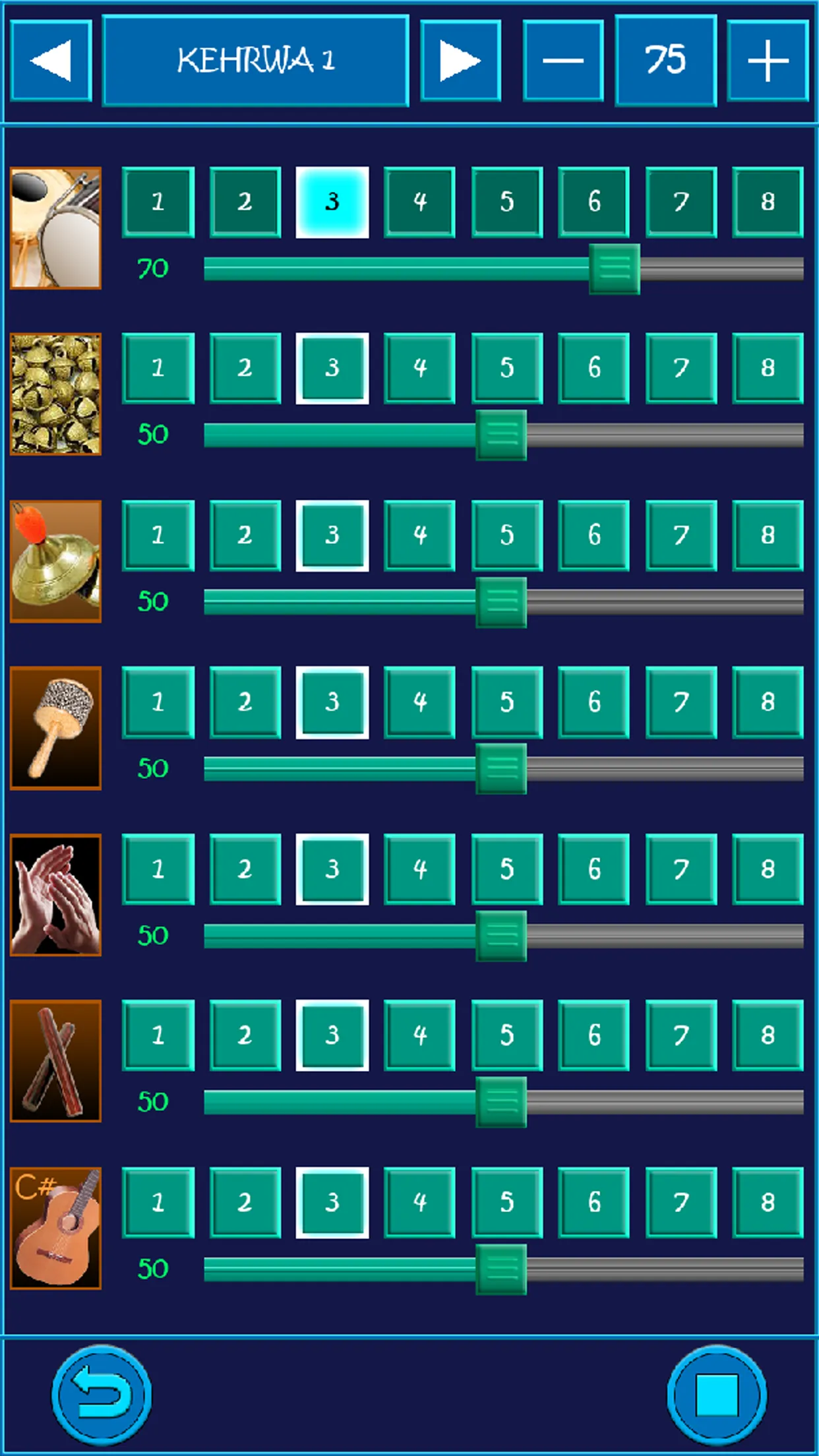 Sing songs anywhere with Bollywood style Tabla and Dholak Rhythms. Including KEHRWA, DADRA, ROOPAK, GARBA, JHAPTAAL, TEENTAAL and DEEPCHANDI Taalas with various speeds. Also comes with chords and key. You can Set the Guitar Chords and Keys to sing at a particular key You can change chords as you go with the song. Our Team: Programmer: Sarbjeet Singh Graphics: Popy Singh