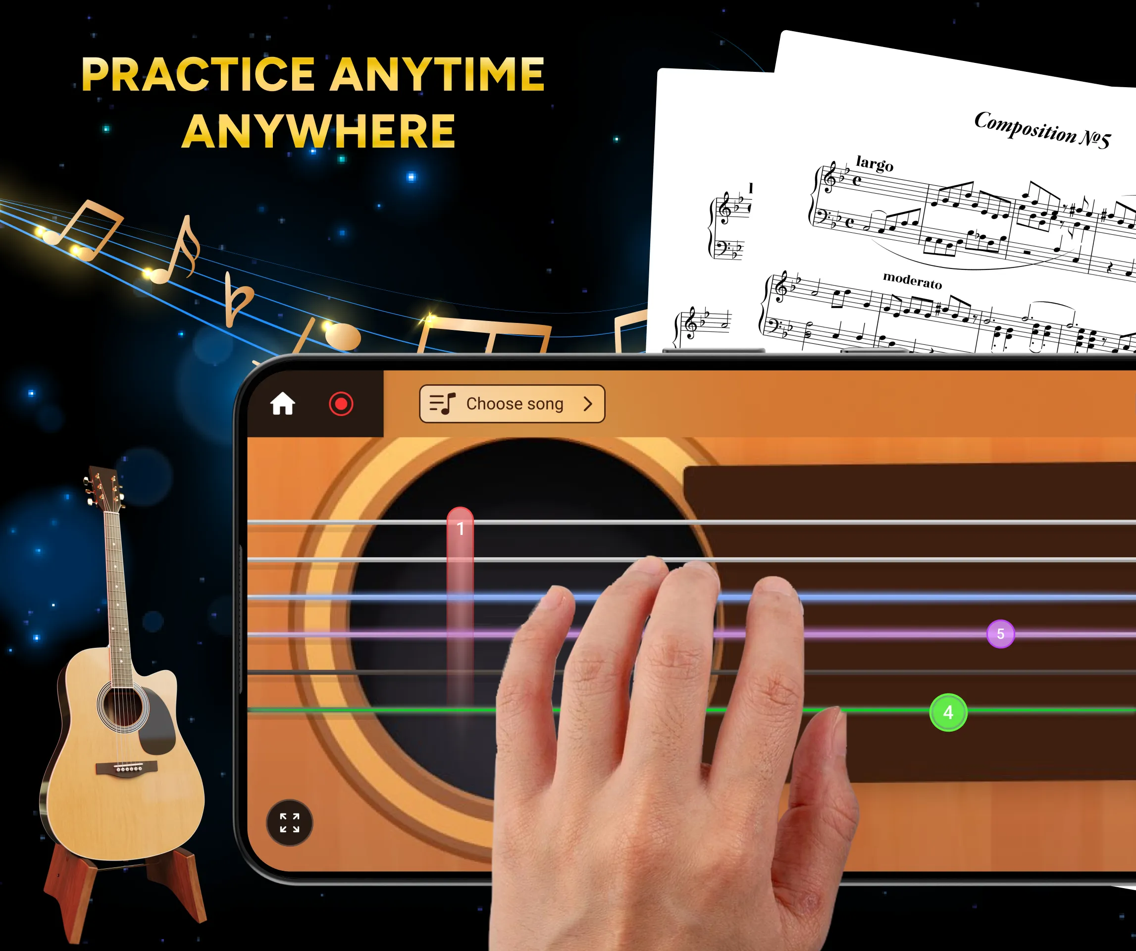 Learn Guitar - Classic Guitar is a fun and easy app to start your musical journey! Discover all the notes on your guitar, play freely, record your sessions, and share your tunes with friends. Perfect for beginners and great for all skill levels. 🌟 Key Features: 🎸 Play Guitar on Phone Practice chords, melodies and rhythms like a real guitarist with responsive and realistic sound....