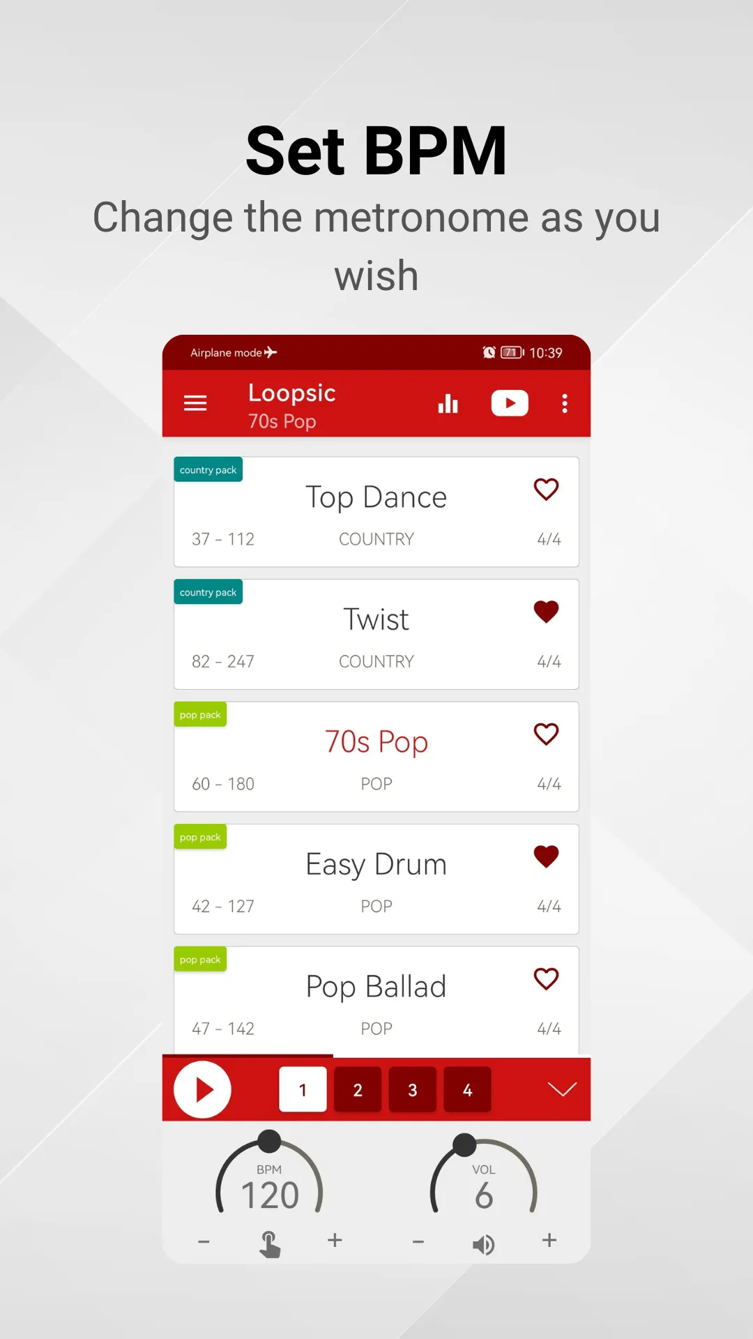 Loopsic is a rhythm station app with great loops. Play different genre of rhythms and jam along! ⚡ Loopsic is designed for both amateurs and professionals. It helps you write your own song. ⚡ You can use it with drums, guitar, piano, darbuka, percussion, violin, strings and many other musical instruments. ...