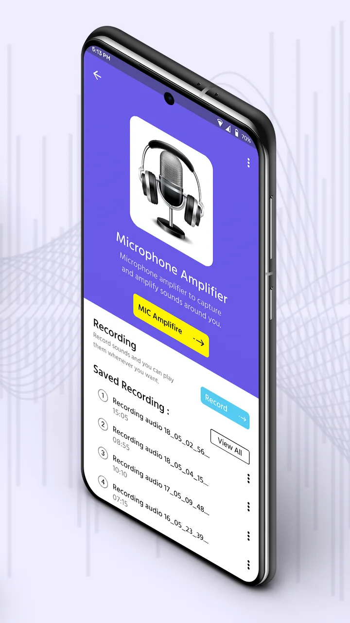 Microphone Amplifier app is as sound amplifier & hearing amplifier to amplify sound from your surroundings for louder hearing. Microphone Amplifier use the device’s microphone or headset microphone for sound amplification. Sound Amplifier is an Live Mic app that helps people hear conversations or their surroundings, and amplify sound. Microphone Amplifier lets you use your microphone as a sound amplifier and audio recorder to help you hear speech, conversations, TV, lectures and sounds from your surroundings more clearly. With Microphone Amplifier, you can use the microphone to amplify sound and route audio from mic to speaker or mic to headphones. WHY USE MICROPHONE AMPLIFIER? - Boost important sound such as speech and reduce background noise....