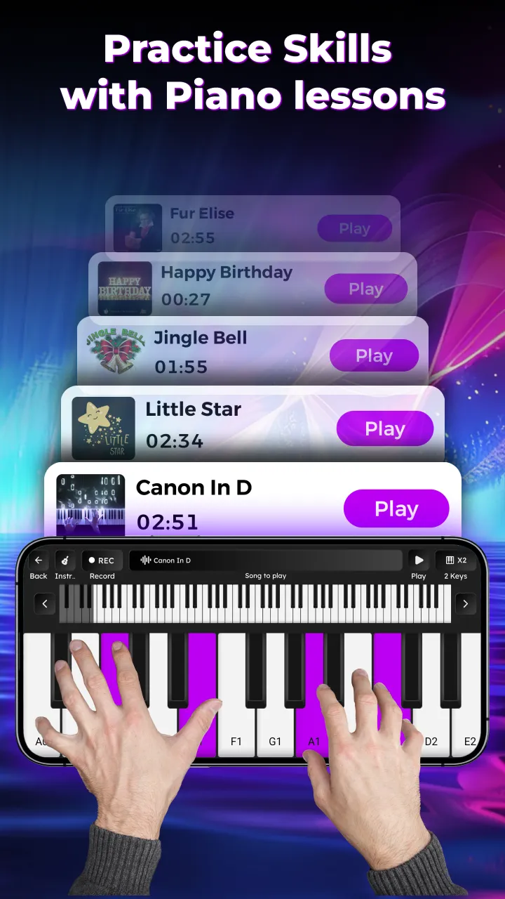 Learn Piano & Real Keyboard App - Time to learn, play, and create your unique piano melodies 🎶️🎶️🎶 Dream of playing your favorite songs like a pro? With the Learn Piano – Piano Keyboard app, you can easily build your skills and play songs on a realistic keyboard. Cute songs, easy lessons, and a mini virtual piano - what more could you need? Ideal for both beginners and experienced musicians. ...