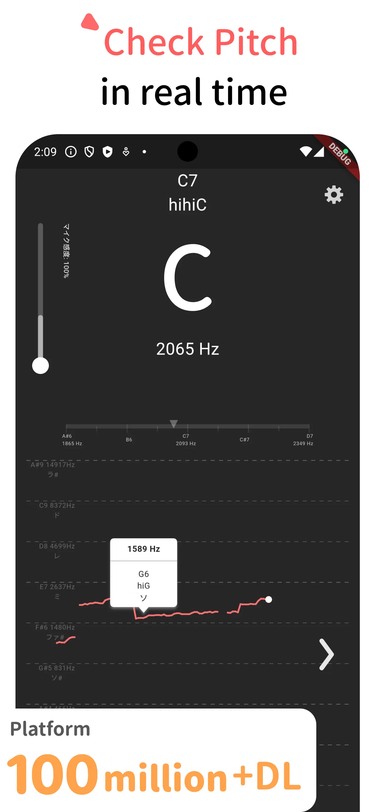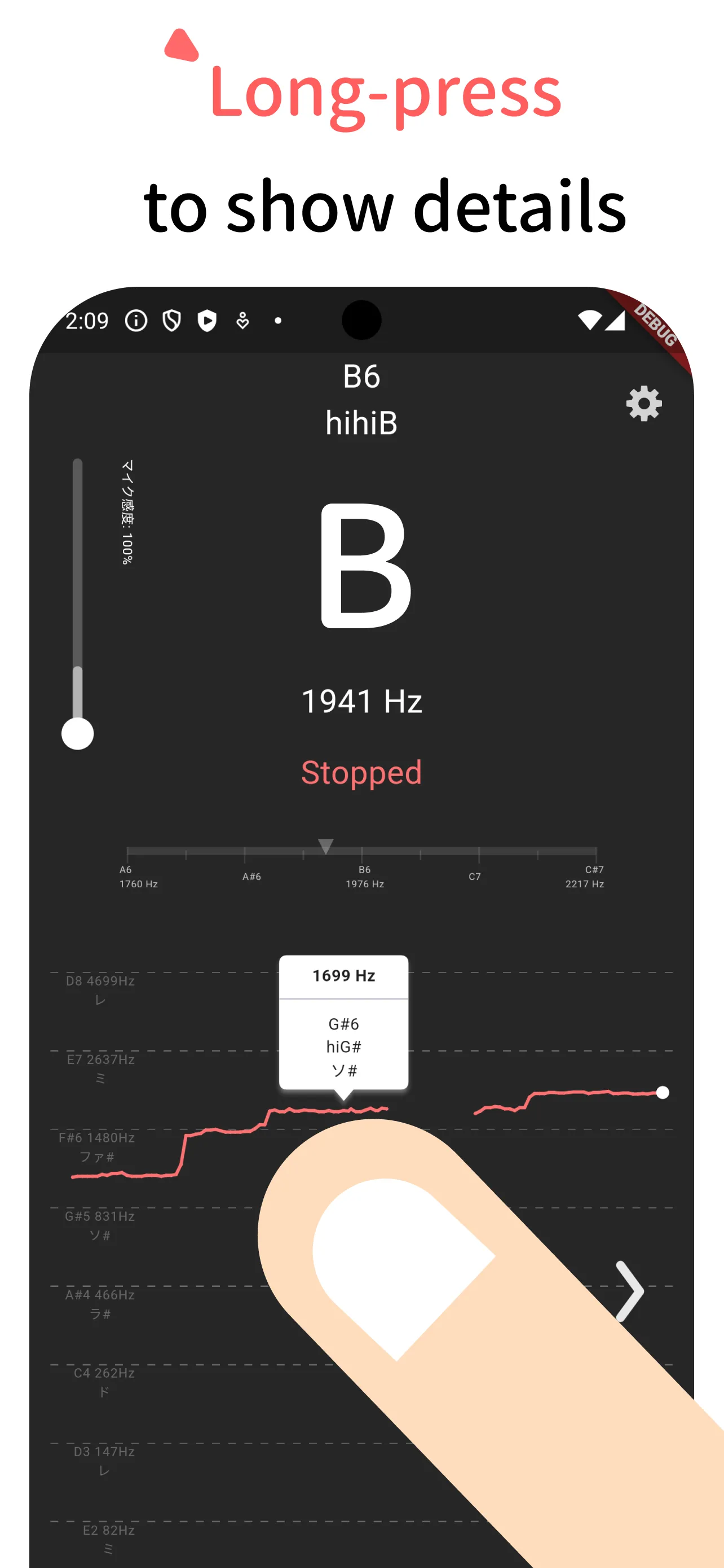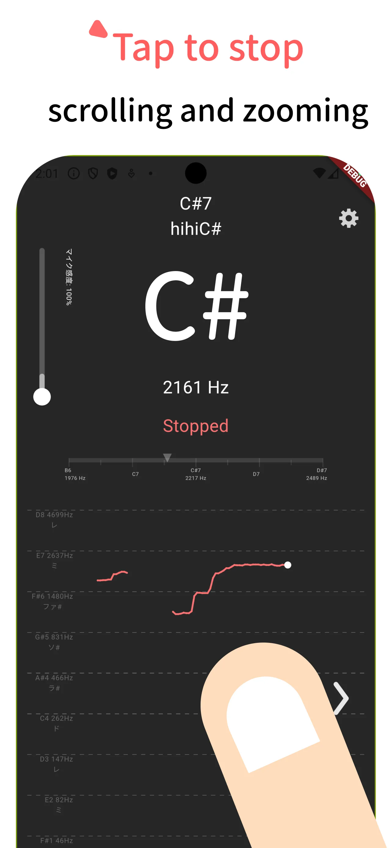 The app analyzes real-time audio from the microphone and displays information such as musical scale, pitch, octave, frequency, and waveform. ■ Usage Examples - Measure vocal range - Practice absolute pitch - Determine the musical scale (pitch detection) of a song...