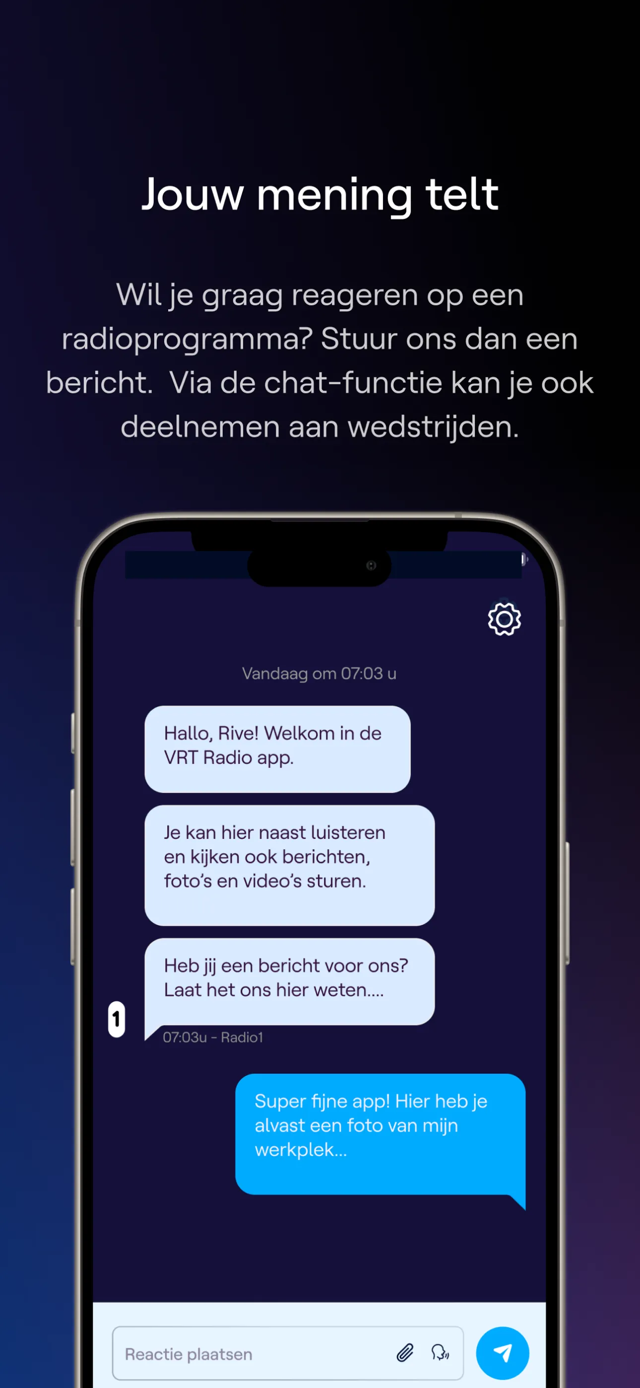 With this smartphone application you always have Radio 1 in your pocket. This way you can listen to and re-listen to your favorite Radio 1 programs quickly, reliably, easily and in high quality, wherever and whenever you want. All this in a recognizable Radio 1 environment, with visuals of the songs and the presenters. Via the playlist function you can quickly find the name of an artist or song from the Radio 1 playlist. Via the app you can quickly and easily respond to your favorite radio program and you are in direct contact with the studio. You can also stream everything to your own television or speakers via Chromecast. From the app you can share the music you like with your friends via social media. You can listen not only to Radio 1, but also to all other VRT stations via this app. In addition to Radio 2, Klara, Studio Brussel and MNM, you can enjoy non-stop classical music on Klara Continuo, and non-stop hit music on MNM Hits and Ketnet Hits. Via VRT News you will receive the most important news bulletins and newspaper commentaries separately. ...