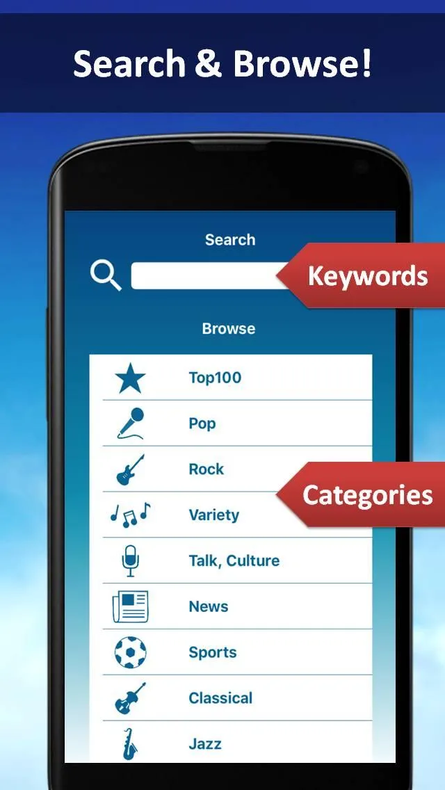 Listen online to your favorite radio stations with 'radio FM !', it's super easy! The most popular radios in your country are already selected: just click on one of them to play. You can even listen to the radio and use another app at the same time. Looking for a particular radio? You want to discover new radios or foreign radios? Nothing more simple with the powerful search engine! You can also browse categories according to your moods: pop, rock, rap, reggae, news, classical music ... You have access to our complete database which includes tens of thousands of radio stations around the world! You can try any radio, and you add your choice to your favorites. ...