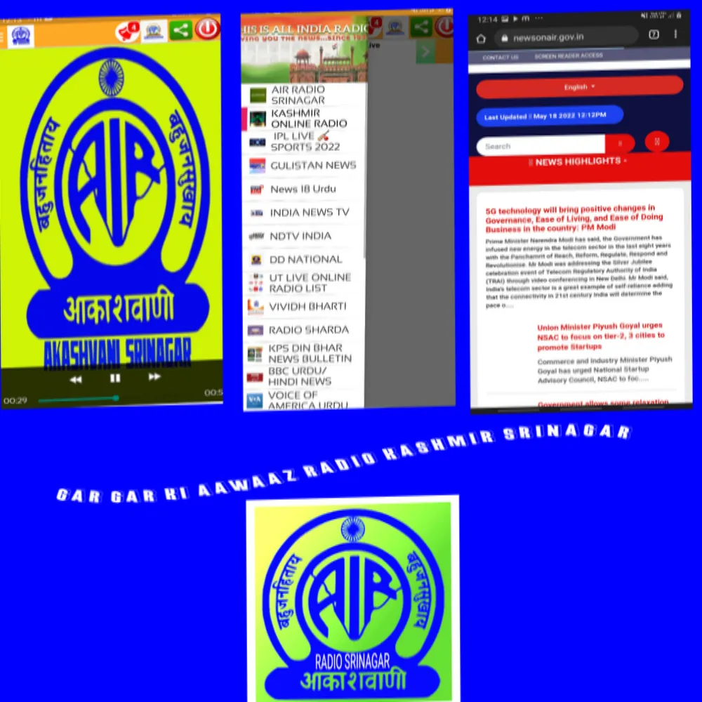 All India Radio Srinagar (AIR Srinagar) is a public radio station operating in Jammu and Kashmir. All India Radio Srinagar broadcasts in Kashmiri, Urdu and Hindi languages. Formerly known as Radio Kashmir Srinagar, it was renamed as AIR Srinagar following the Jammu and Kashmir Reorganisation Act, 2019. Sister stations: AIR Jammu Operator: All India Radio Webcast: AIR Srinagar Live