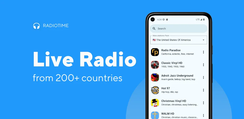 Introducing RadioTime, the ultimate radio streaming app. With over 35,000 radio stations from around the world, RadioTime offers a staggering variety of options for music lovers, news junkies, and sports enthusiasts alike. RadioTime is the perfect app for anyone who wants to listen to music, news, sports, or anything else on the go. With our app, you can easily search for and discover new radio stations from any country, making it the perfect companion for travel enthusiasts or anyone who loves exploring different cultures. But that's not all - RadioTime also allows you to add your favorite stations to your personal collection for easy access, and listen to them in the background with no limits. This means you can keep enjoying your favorite station while you browse other apps, play games, or even when your device is locked. ...