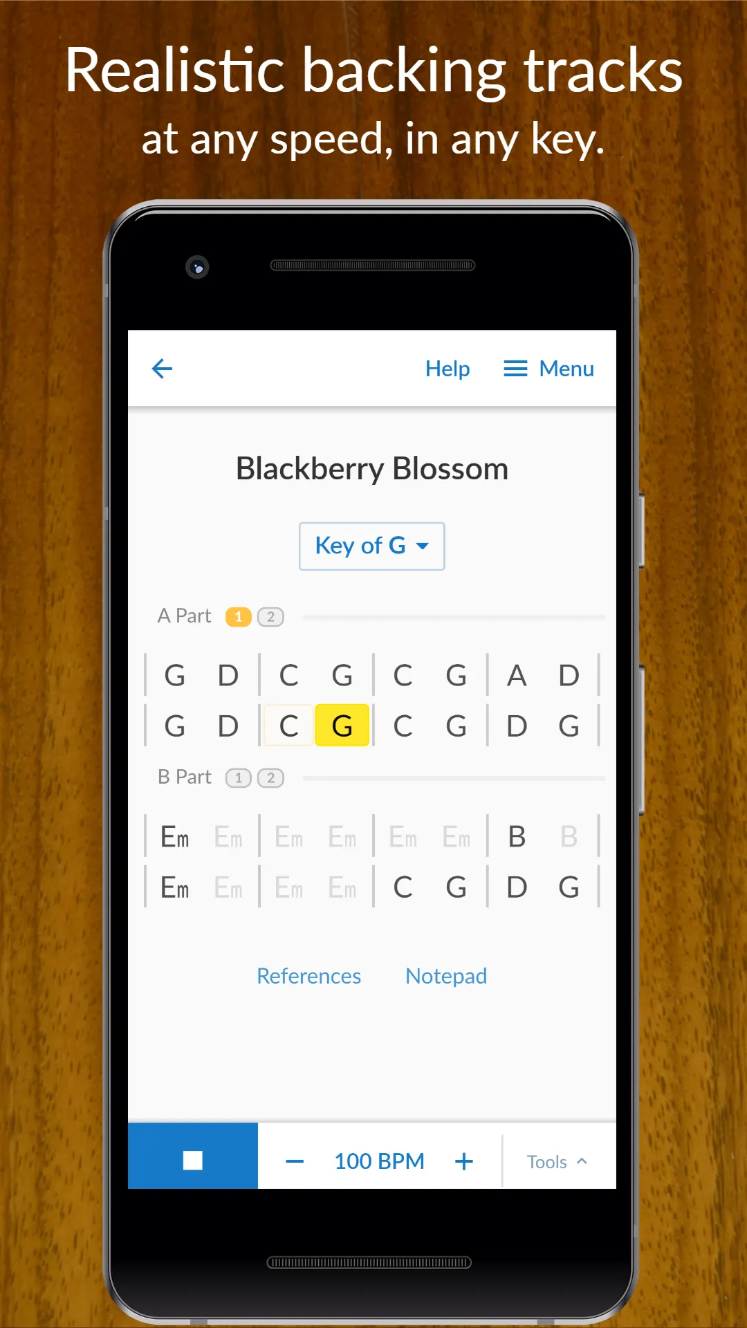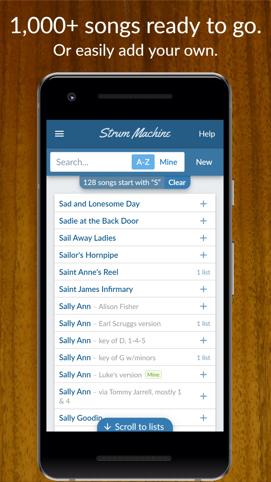 Practice all your songs with customizable backing tracks generated with audio from real instruments: guitar, mandolin, and standup bass. Strum Machine will play any chord progression, in any key, at any speed. It's one of the few apps built specifically for players of bluegrass, old-time, and fiddle tunes. • Hear rhythm backup generated in real time from real instrument audio. ...