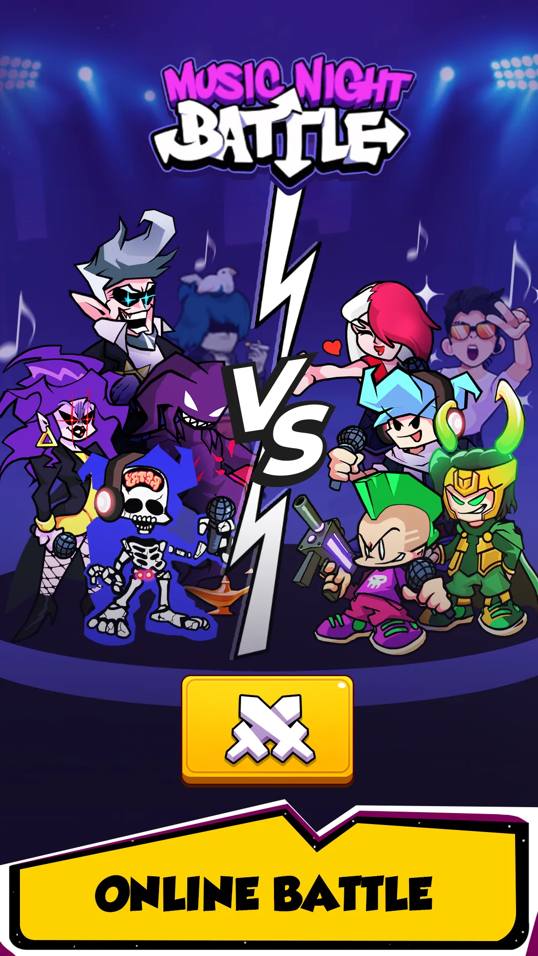 Set your Friday night on fire by real music battle! FNF Games! Music Night Battle is an amazing music game where you have to use multiple skills to beat your opponents in funky music battle. It's the only game with an online mode to compete against other players, make new friends and earn your fame. Friday Night Funkin' (FNF) is a music game where you must beat the boss by shooting music arrows. With its funny melodic gameplay and old-school art style, FNF is a fun and challenging game that will drive you insane with an amazing experience. So play now and see if FNF can convince you! ...