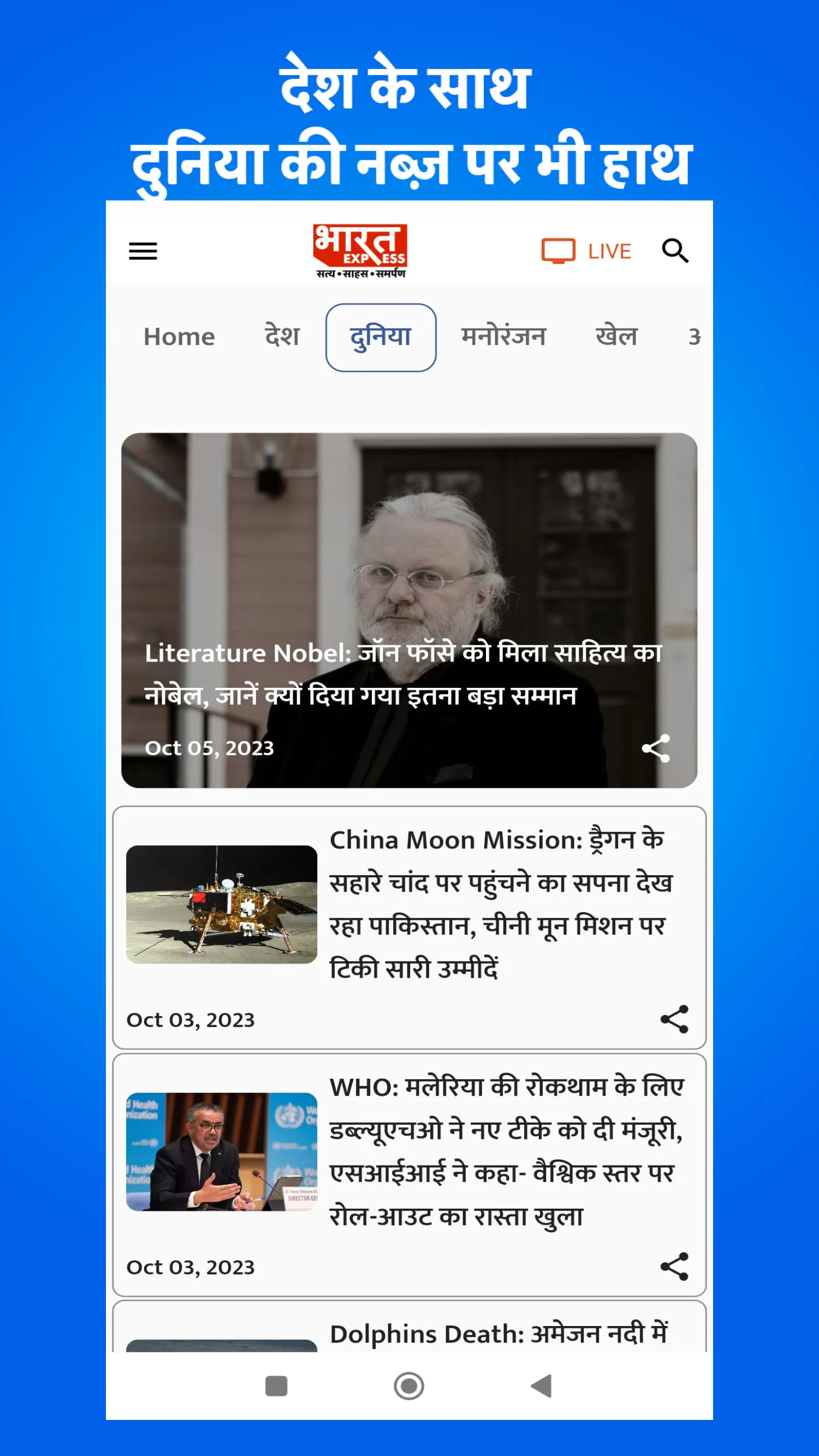 Bharat Express News Network is your prime destination for the news of politics, business, crime, sports, lifestyle, and entertainment. It's a platform that believes in NEWS more than views. A platform that strives for the true sense of journalism. With truth, courage, and dedication as its motto, it covers every aspect of news under the sun, be it the crisis in Afghanistan, the war in Ukraine, the developments in the field of technology, Indian girls clinching gold in sports, or the remote vill...