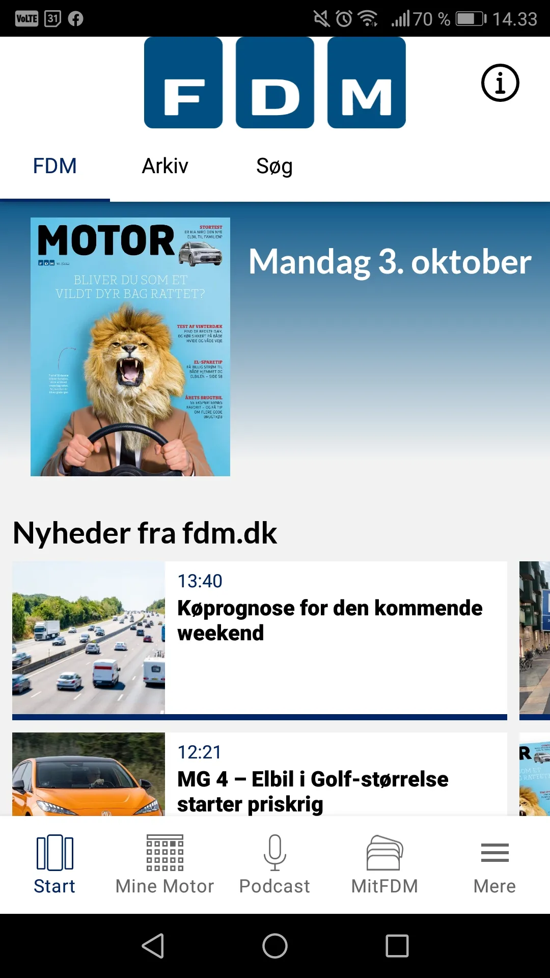 DM Motor is your quick shortcut to news, car tests and podcasts from FDM and Motor in a digital version. • The app can be used by everyone, but only members of FDM can read Motor as an e-magazine. It simply requires you to log in with your member login. • In Motor you can find tests of new and used cars, car news, travel articles, consumer goods and much more. The magazine is close to the authorities, the car industry, the legislation and the general conditions for motorists in Denmark. You also have the option to search the archive and read previous editions of Motor. • Under "My Motor" you will find the numbers of Motor that you have chosen to download. You can delete previous versions at any time by pressing "Edit", as well as you can set the app to automatically delete previous versions by pressing the trash can with the two arrows. • FDM's podcast Frigear is easily played from the app, and you can listen to the podcast while using your phone for other things. • News and car tests from fdm.dk are automatically published in the app, so you can easily follow the things that are important to you as a driver. When you press a news item, it is displayed from fdm.dk, but if you want to return to the app, simply press "Close" in the top left corner....