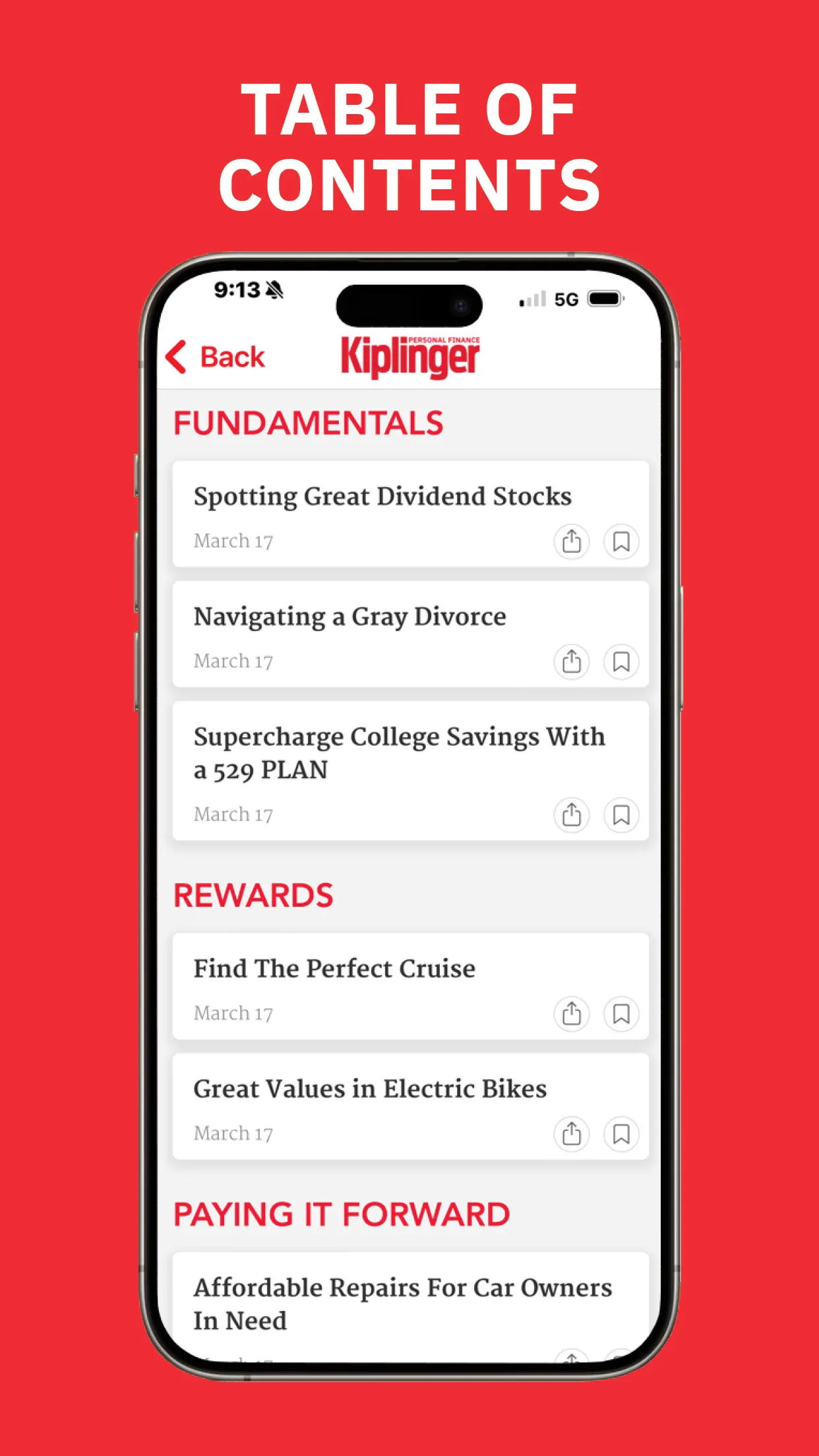 For more than 75 years, Kiplinger Personal Finance magazine has helped millions of readers enjoy a richer life, build wealth, cut taxes, spend smarter, and retire rich. Every issue is packed with proven insights on investing, retirement, taxes, credit, insurance, estate planning and more. Throughout the year we pick the best banks, online brokers and rewards credit cards. We also name the top places to retire, and we rank mutual funds and exchange-traded funds. Kiplinger even tracks and updates a proprietary portfolio of top mutual funds, ETFs, and dividend stocks. ...