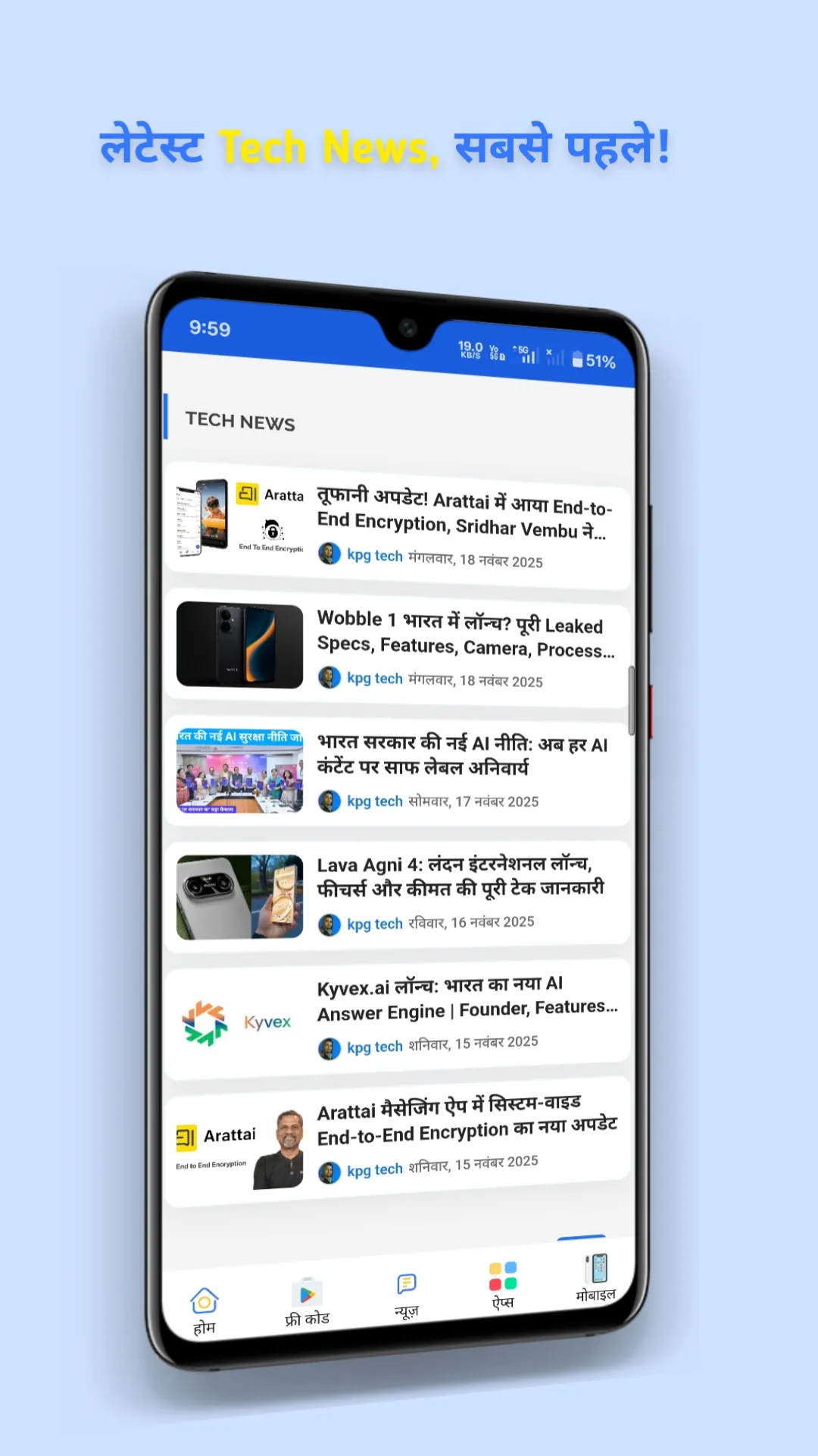 KPG Tech News Hindi ek Hindi tech news app hai jahan aapko milta hai latest updates from the world of technology — mobile phones, gadgets, apps, social media, AI, aur IT duniya ki har badi khabar. Hamari team aapke liye roz naye articles aur short Hindi tech updates laati hai, taaki aap hamesha updated rahein. Yahan aap padhenge: 📱 New Smartphone Launches & Reviews...