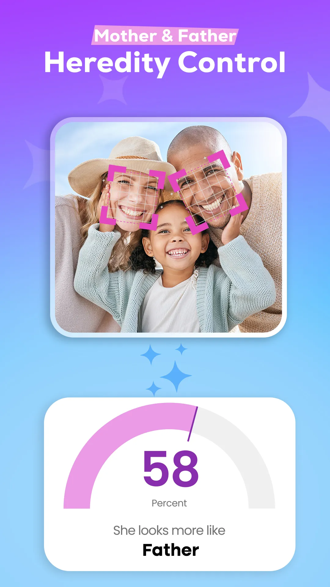 Ever wonder what your future baby will look like? The AI Baby Generator Face Maker app is for you! This interactive AI future baby face generator and fun AI baby face generator lets you discover your future baby using advanced AI face generator technology. The AI Baby Generator Face Maker app predicts your future baby's face with amazing accuracy. The AI future baby face generator, babymaker, and future kids maker lets you explore endless future baby options. Get creative with the AI child generator, or try the future baby AI generator for more fun. Explore AI Baby Prediction with the future baby generator: - Upload photos, choose your future baby’s gender, and watch as the AI baby generator creates a baby face. - Predict eye color, hair type, and more with the AI face generator and AI baby generator....