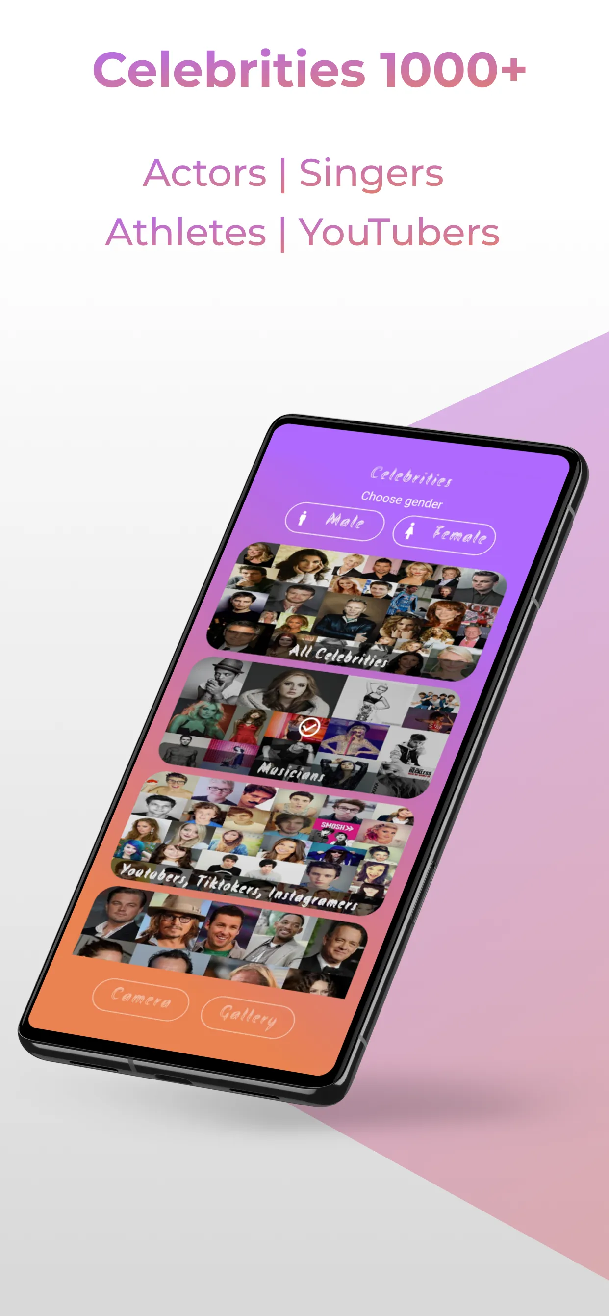Discover your celebrity doppelgangers and find out who you resemble with the Celebrity Look Alike app. Do you ever wonder, "Who do I look like?" or "What celebrity do I resemble?" Now, you can easily find your twin celebrity and share your stunning look-alike photos with your friends. Features: Accurate Facial Recognition: Our advanced facial recognition technology analyzes your facial features and compares them to a vast database of celebrity images. Get incredibly accurate results and find your celebrity look-alikes instantly. ...