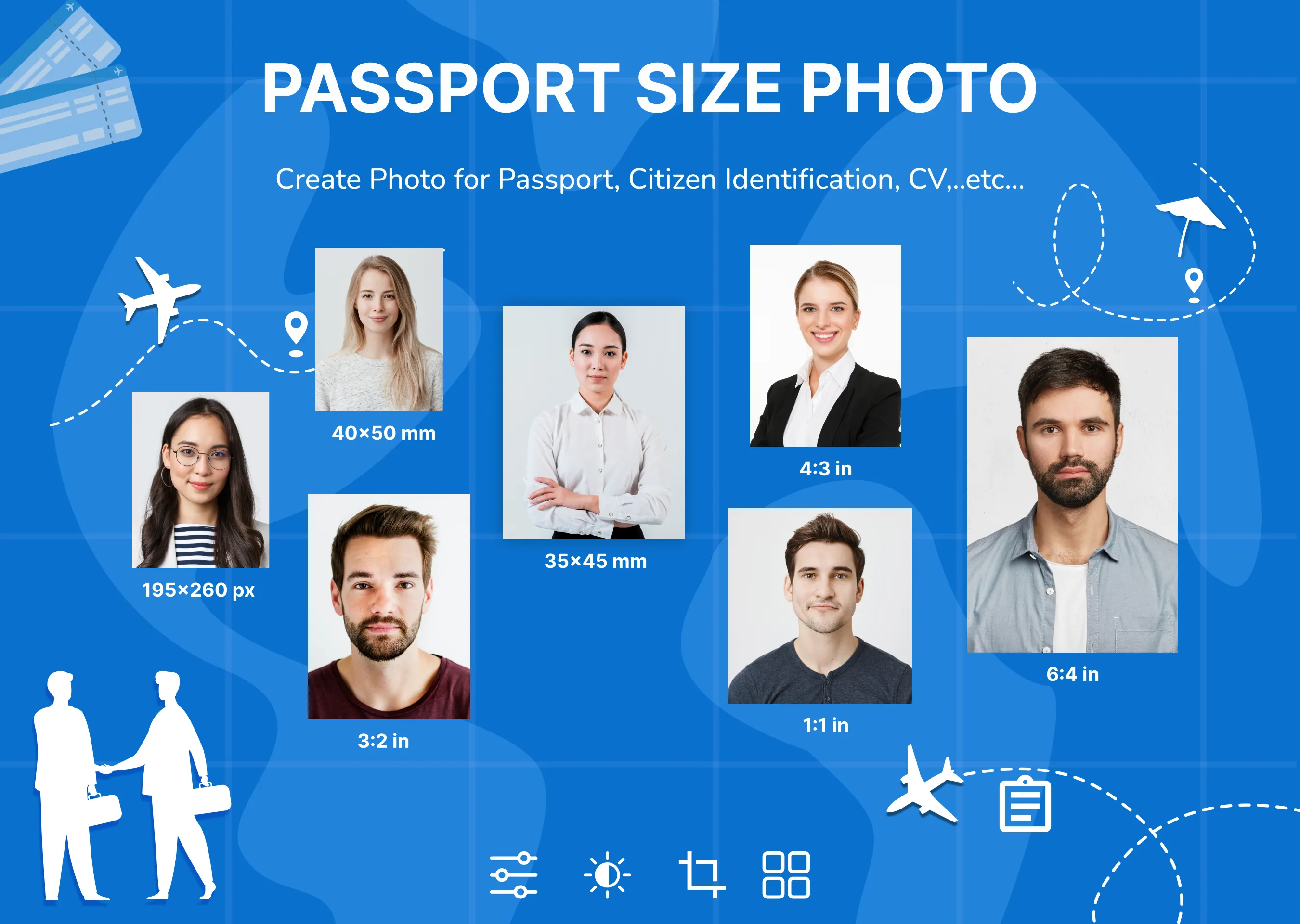 You are looking for an photo editor application that will help you make photos for your VISA, identity card and CV...? ID Photo: Passport Photo Maker is the perfect choice to your demand. This is a mobile passport photo application to create photos for identity cards, election cards, pan card maker, visa photo and custom photo designs. Highlight features of ID photo passport photo maker app: ✨ Background eraser & background remover: passport photo white background...