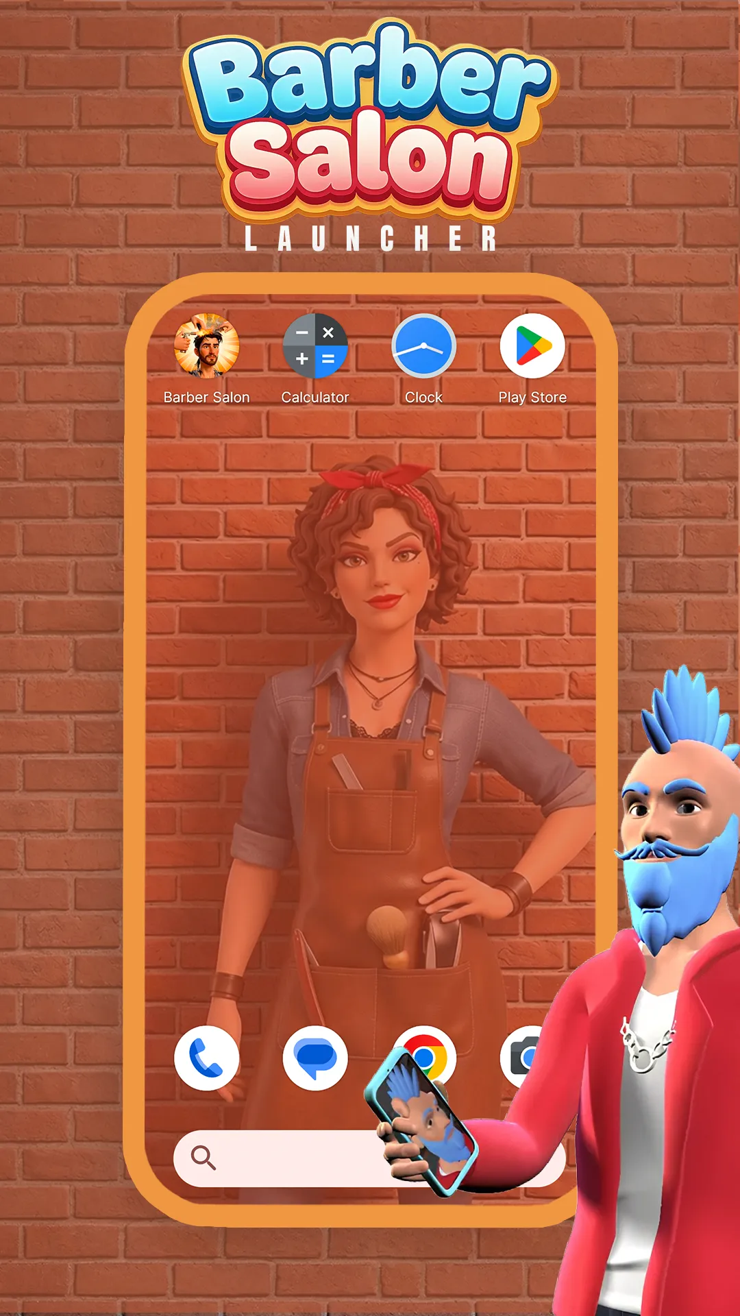 Welcome to Barber Salon Launcher - Your new Android home screen! Barber Salon is a fun and creative game where you play as a barber running your own beauty salon. Take care of your customers in many situations, from classic hair cutting, washing, and drying with an air fan, to crazy and bizarre styles like burning hair edges or removing eyebrow hair. Use different tools, experiment freely, and give each client a unique look while enjoying colorful graphics and satisfying gameplay. This home screen app includes multiple customization features like Themed Backgrounds that brings the game’s style straight to your home screen; Cool Gestures that make navigation quicker and more direct: Swipes, taps, and double taps can be assigned to open specific apps, trigger shortcuts, or perform common actions, reducing the need to move through menus. ...