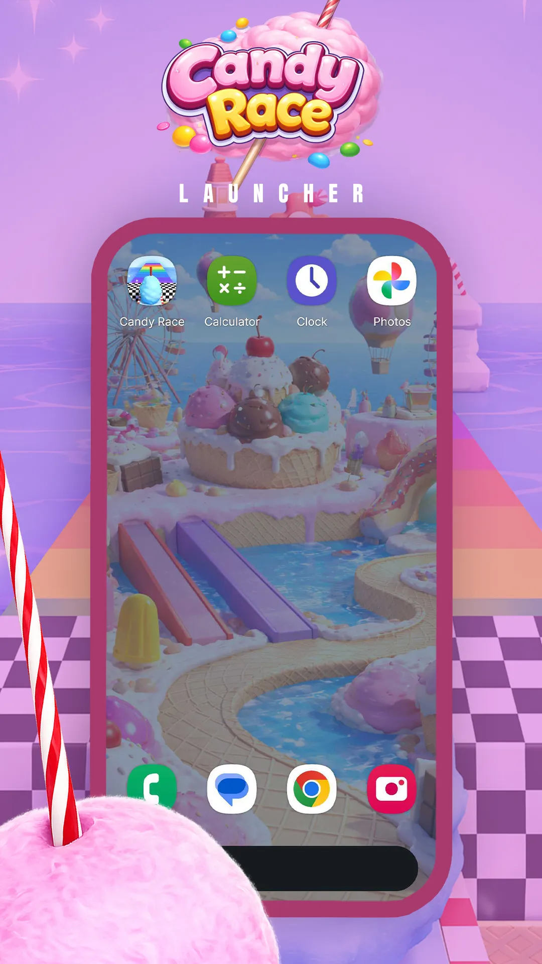Welcome to Candy Race Launcher- Your new Android home screen! Candy Race is a fast-paced and colorful racing adventure where you compete to reach the finish line first! Collect rewards, unlock exciting new levels, and prove you have what it takes to become the ultimate candy champion! 🍭🍫 This home screen app includes multiple customization features like Themed Backgrounds that brings the game’s style straight to your home screen; Cool Gestures that make navigation quicker and more direct: Swipes, taps, and double taps can be assigned to open specific apps, trigger shortcuts, or perform common actions, reducing the need to move through menus. ...