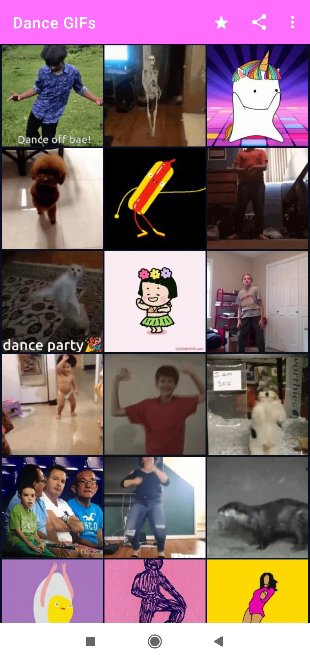If you like to dance and have parties and you want to express your mood you are in the right place to share dance gif animated images send the happy dance gif images in messages or share your funny dance on social media our app gives you amazing dancing gif share now your favorite dance with your friends HD gif images for free. Transform Your Chats Instantly! Dive into a user-friendly interface packed with a vast collection of dance GIFs. Whether you love dancing, we've got you covered. And the best part? Our animated dance stickers GIFs are Free to use, Let your emojis and emoticons soar with each message! ...