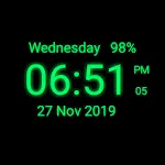 Digital Clock Live Wallpaper Show Your Time & Date an On Phone Screen Digital clock Live Wallpaper show date, time (12 Hr and 24 Hr), battery In percentage in percentage on phone screen with digital style with simple formate. time also show 12 Hr or 24 Hr formate as per your choice we also add so much date formate as you want to select if you does't need any indicator like secons, battery, date so just select hide and not show in screen. You can choose clock color with color piker and two style of clock just select clock style. Clock Function or Features:- ...