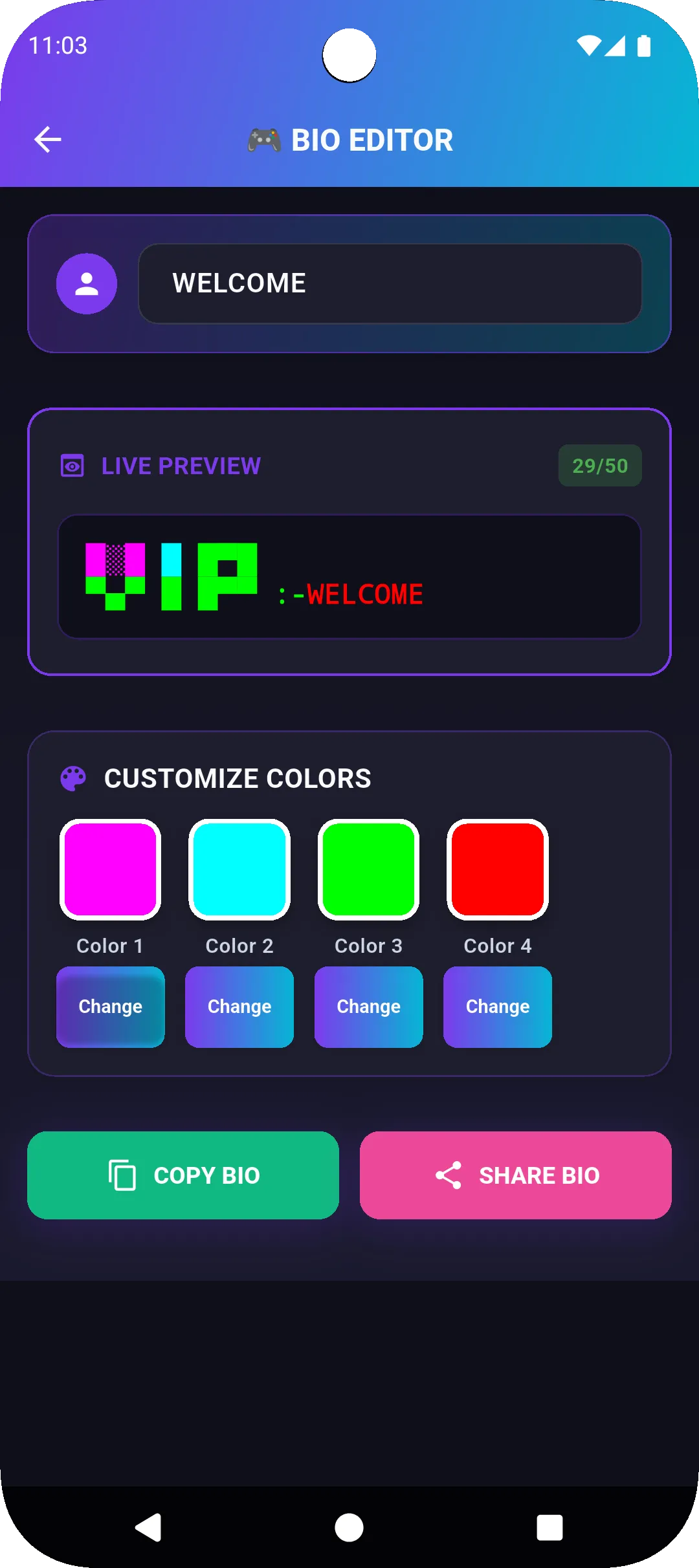 FF Pro Bio Codes is the ultimate app for creating stylish, attractive and pro-level FF Max bio. Make your gaming profile stand out with 1000+ unique bio codes, fancy text styles, symbols, fonts, line breaks, aesthetic designs, badge styles and more — all in one powerful tool. Whether you want a cool signature, a killer one–line quote, or a fully designed FF bio, this app makes it super easy. Just tap, copy, and paste into your Free Fire profile. 🔥 Top Features ...