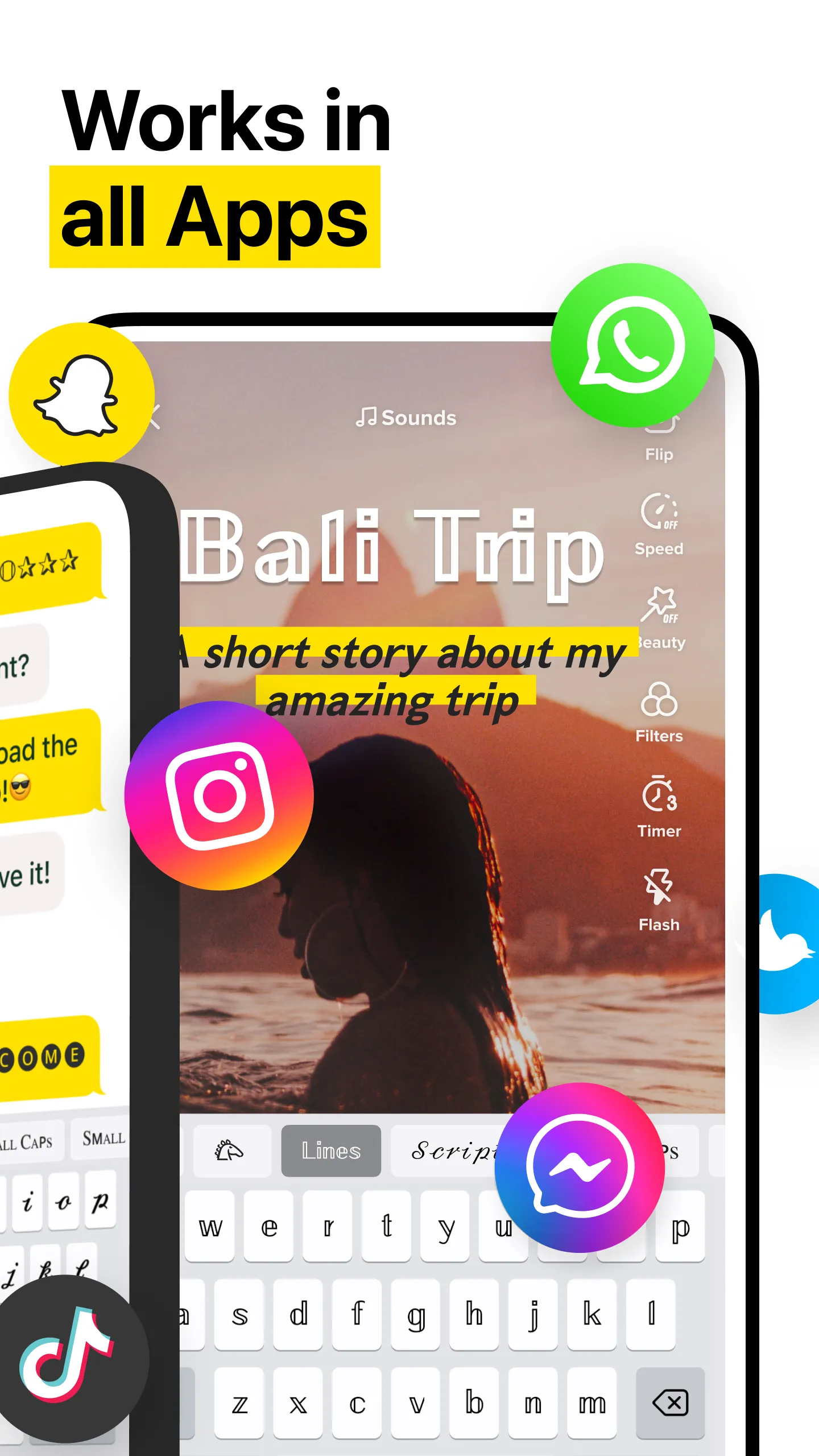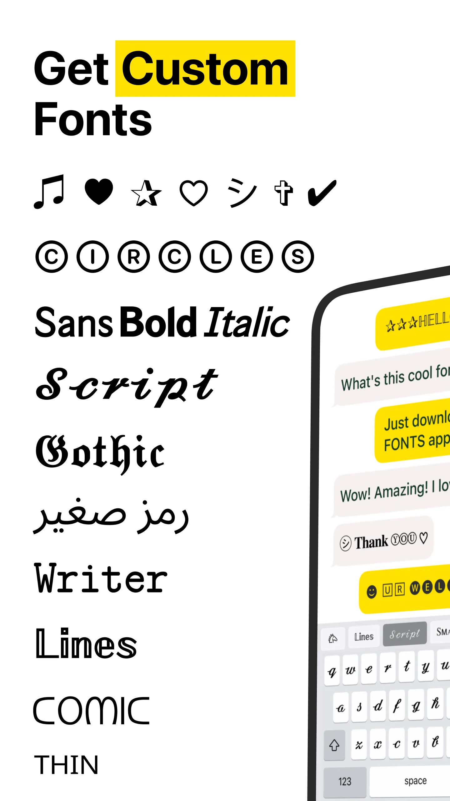 Discover the world of free fancy fonts! Install fancy letters, text symbols and stylish fonts that work with every app. You will get a stylish text with different symbols and letters. New keyboards change your normal text to the special and make you unique all the time. FONTS Do you prefer bubble letter fonts? Looking for a cursive writing app with free cursive fonts? Or you just want a stylish handwriting keyboard? With the help of our unicode font installer, you can make your dreams come true! This easy-to-use app can make magic with your text and keep surprising you with new fancy styles full of emojis and symbols. KEYBOARDS...