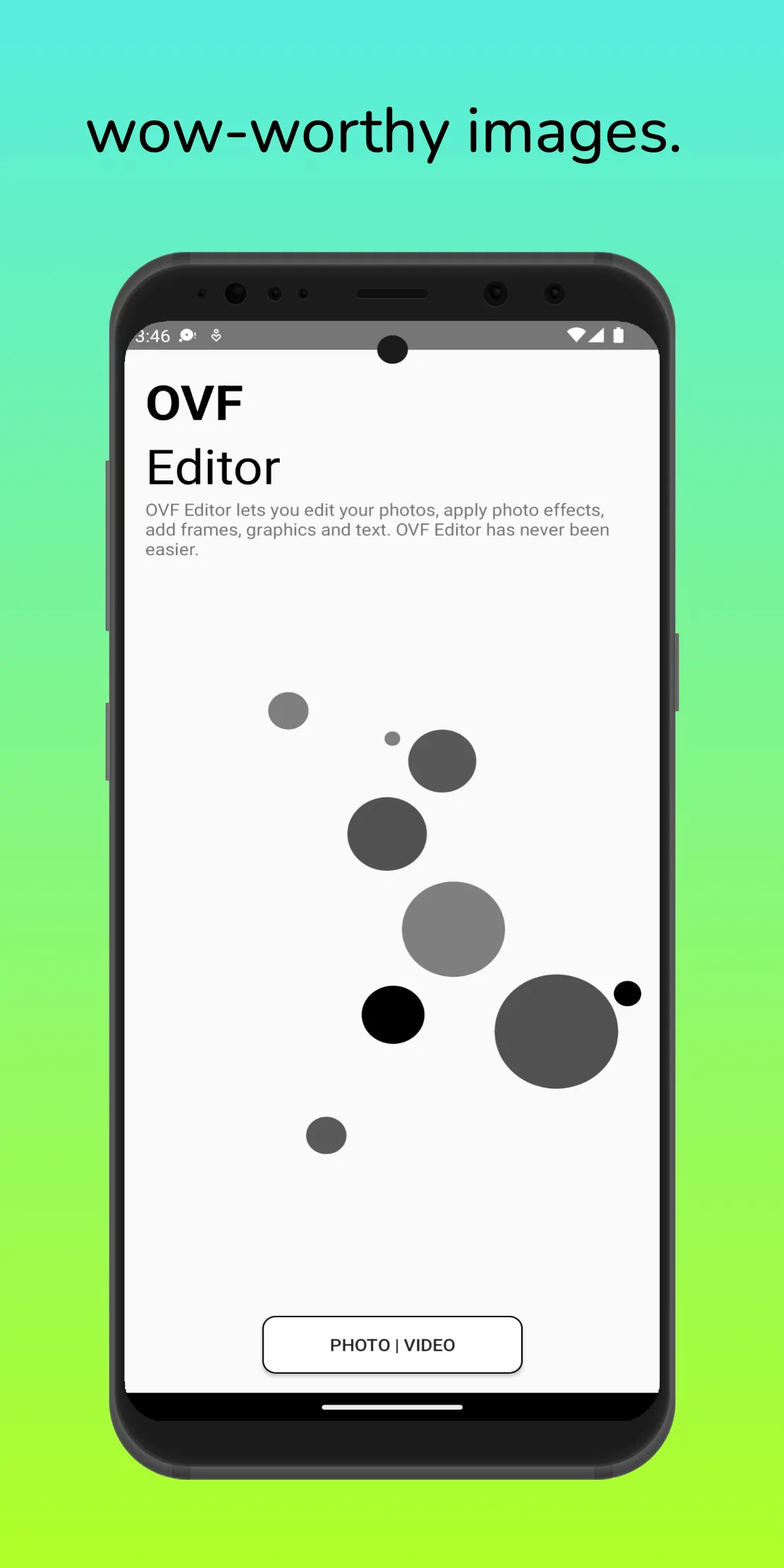 OVF Editor lets Snapchatters to edit photos, apply photo effects, and add frames, graphics, and text. OVF Editor has never been easier.