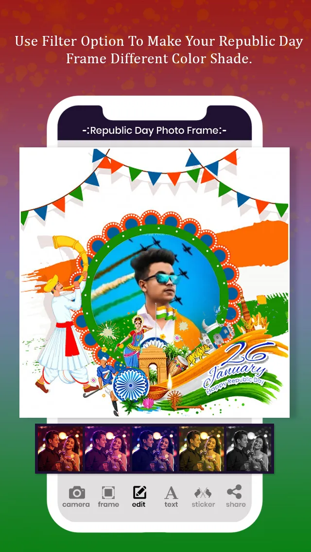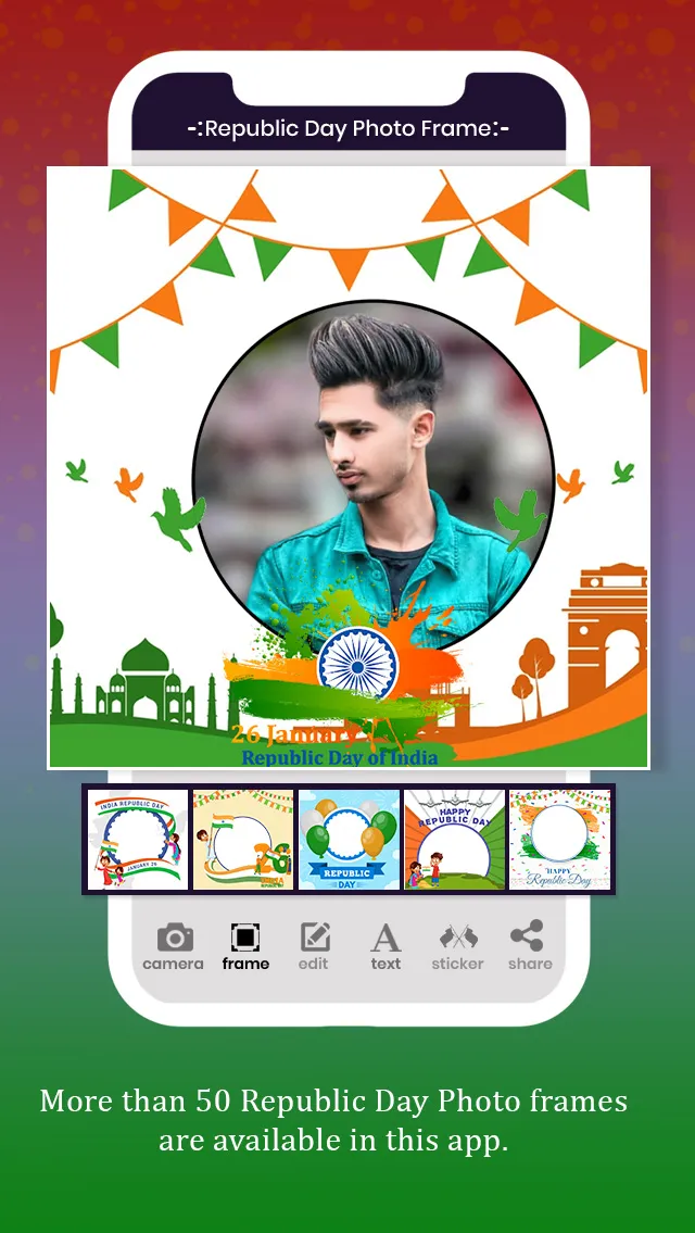 Happy Republic Day Photo Frame contains large Collection of Republic Day Frame , Stickers and Many More hashtags for Happy Republic to share your Photo with Republic Day Photo Editor . Republic Day Photo Editor celebrates 26th January as a Happy Republic Day with amazing features such as Filters , Indian Flags , Different styles of Republic Emojis and Many more amazing Republic Day Photo Frame Collection. Republic Day Photo Frame Main Features ...