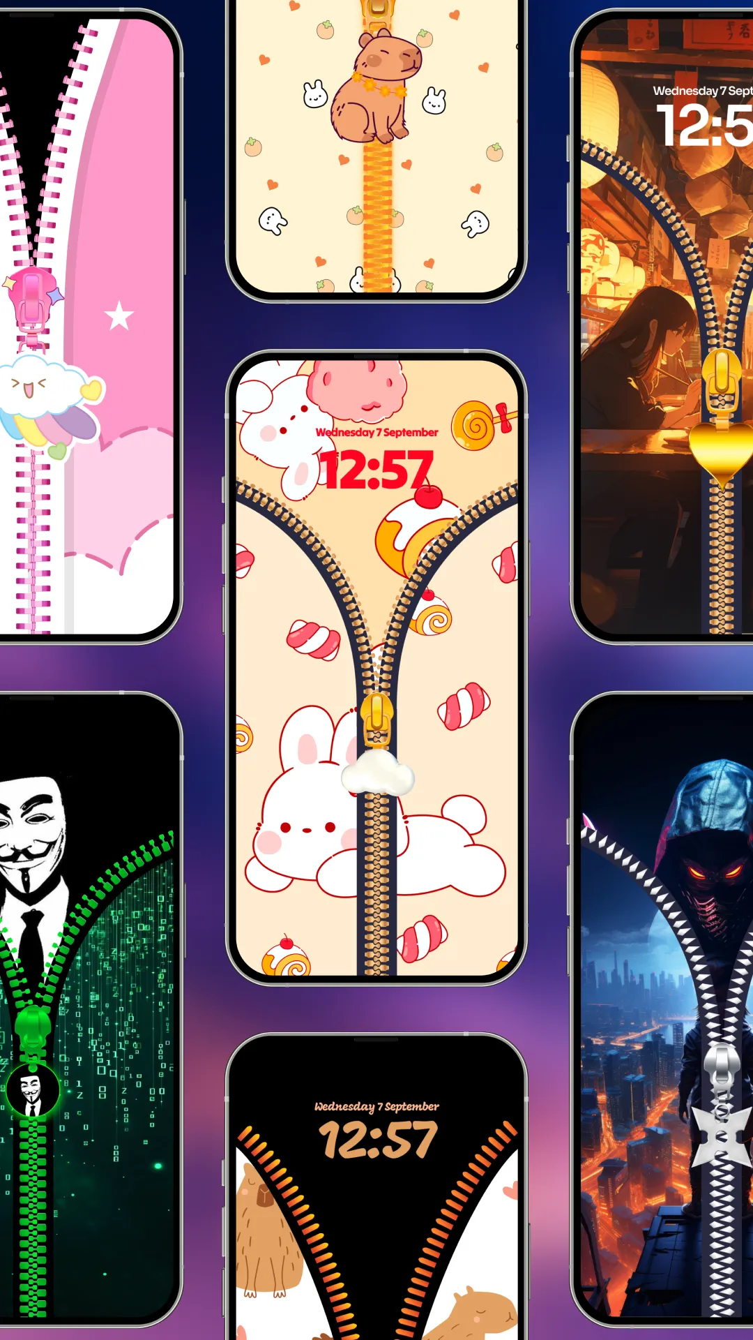Tired of your basic lock screen? Try a unique lock screen theme with a zipper effect now! Pull down to unlock easily and enjoy vivid visuals featuring characters, cartoons, anime, landscapes, and more. Why choose Zipper Lock Screen? - Transform your lock screen with a fun and eye-catching zipper effect - Enhance privacy with quick PIN setup - Customize zipper styles, backgrounds, and layouts in just a few taps...