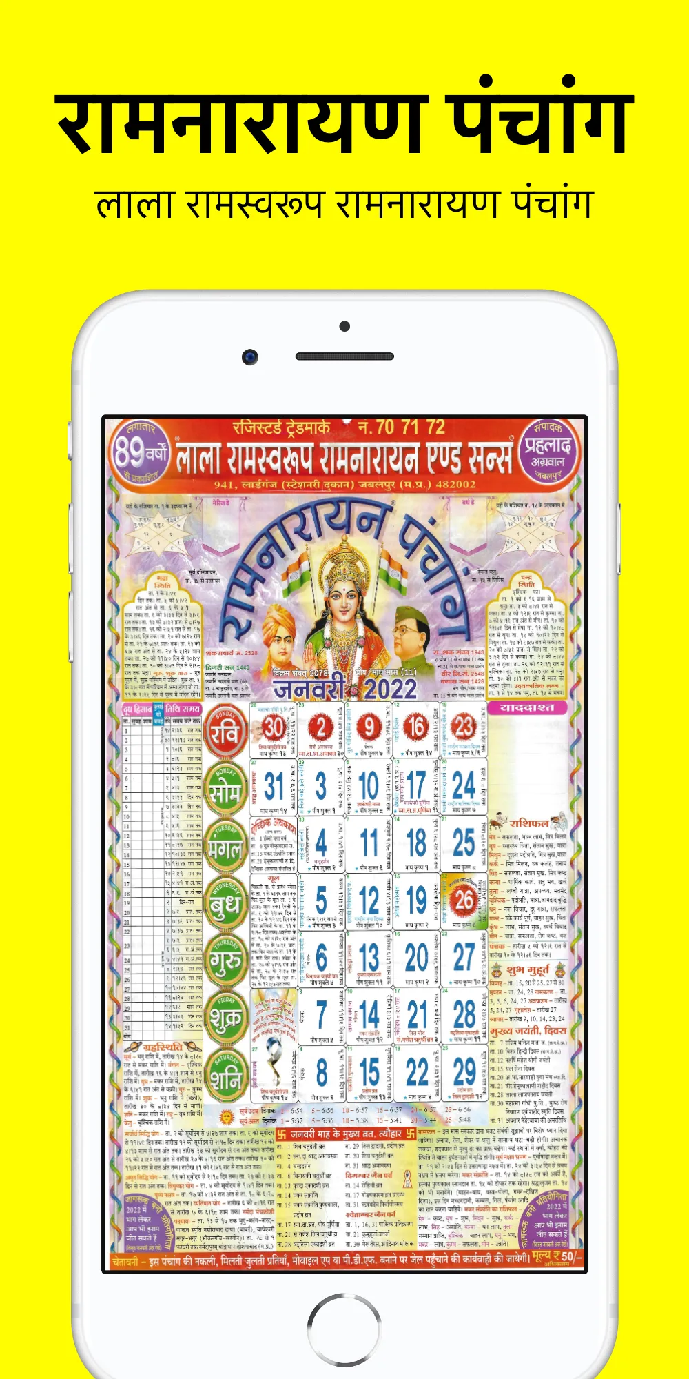 Our aim is to easily provide the 92 years continuously published popular Lala Ramswaroop Ramnarayan Panchang (Calendar) by Prahlad Agrawal through this app. at present the calendar of 2022 to 2025 is available in this app.
