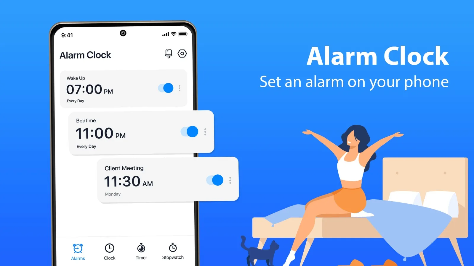 Start your day effortlessly and enjoy restful sleep with Alarm Clock ⏰ Transform your daily routine with the Alarm Clock app—your ultimate solution for waking up on time and managing your schedule with ease. Featuring a versatile alarm clock, a handy timer, and a precise stopwatch, this app is designed to keep you on track throughout the day. 📞 After Call Pop-Up: This smart alarm app is designed to make your daily routine smoother and more organized. One standout feature is the aftercall functionality, which allows you to set or adjust your alarms right after every phone call. Whether you're planning your next wake-up time, setting reminders for important events, or tweaking your schedule, this app ensures you never miss a beat and keeps your day on track with minimal effort. Key Features:...